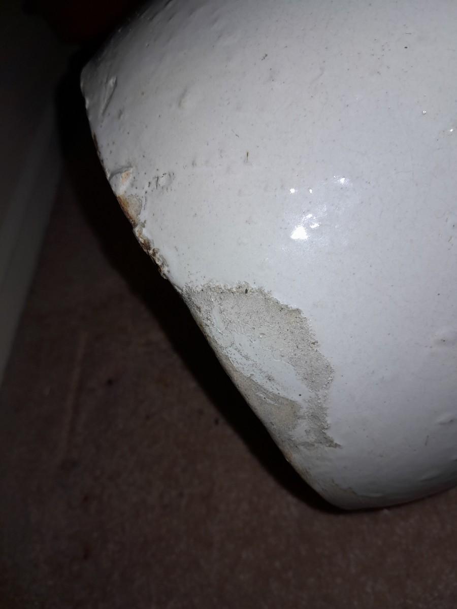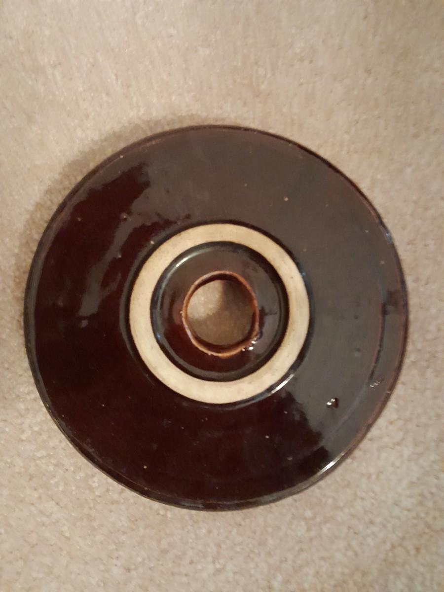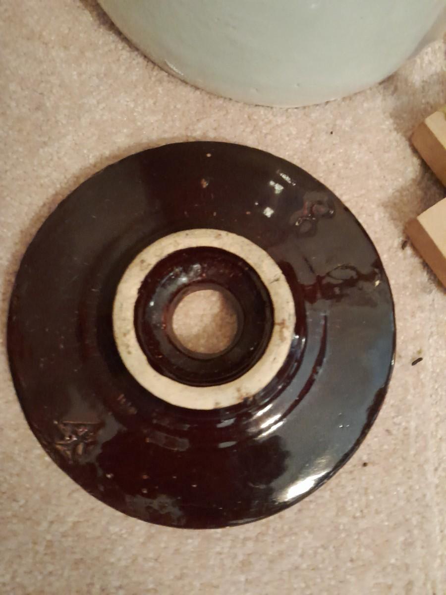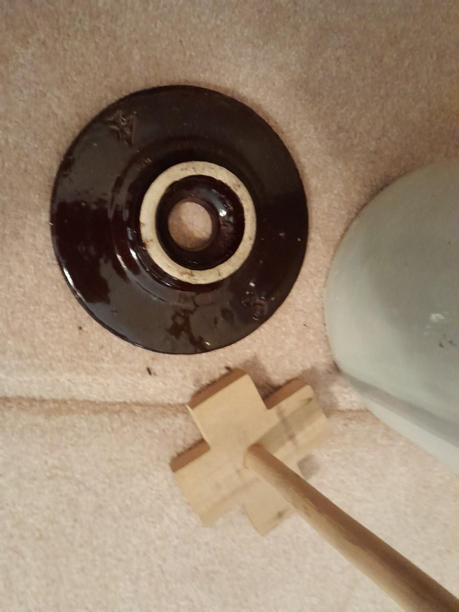ANTIQUE BLUE HEART #4 ONE HANDLED GLAZED BUTTER / CREAM CHURN WITH PADDLE 16" TALL