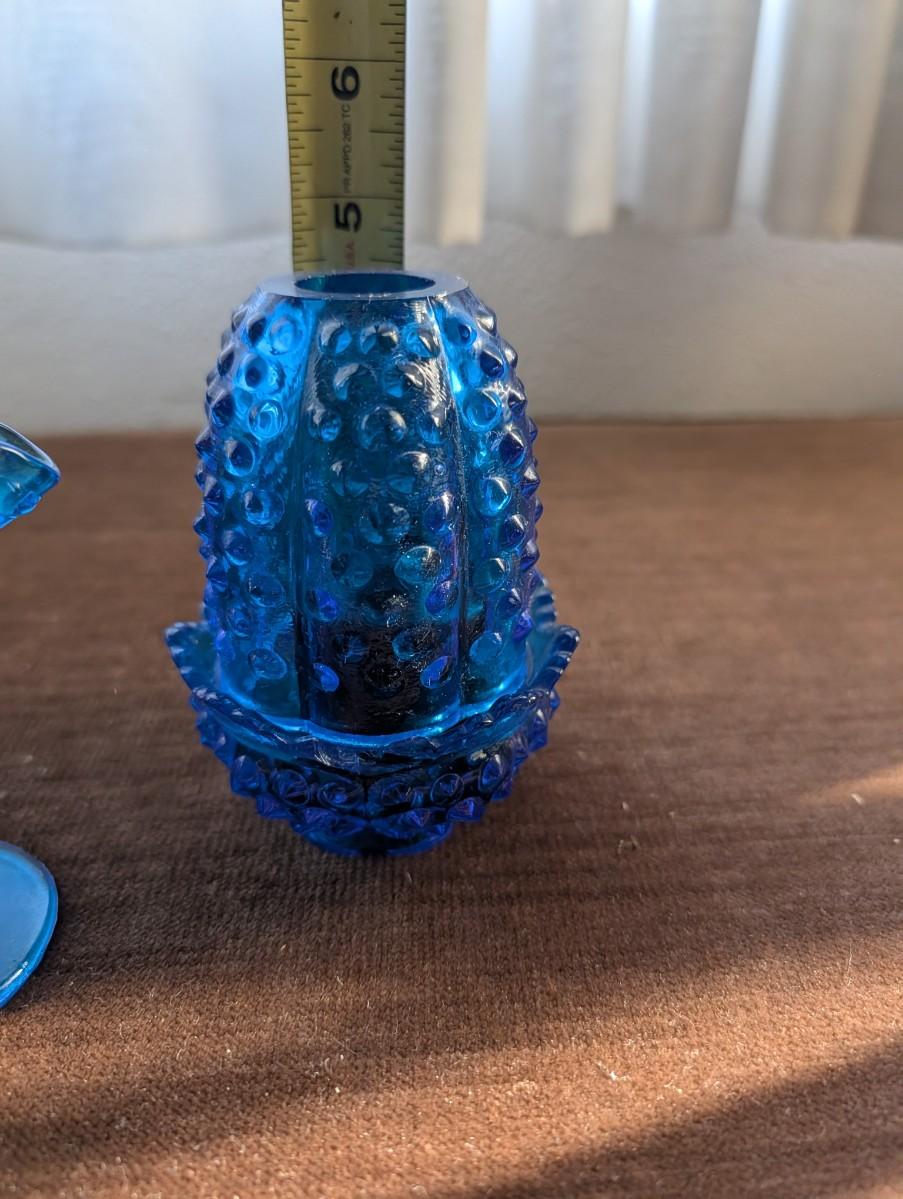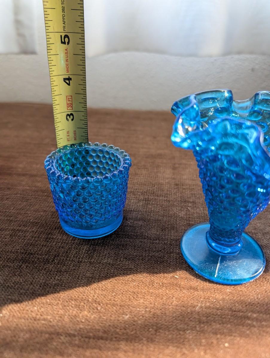 Vintage blue hobnail glass votive holder.
