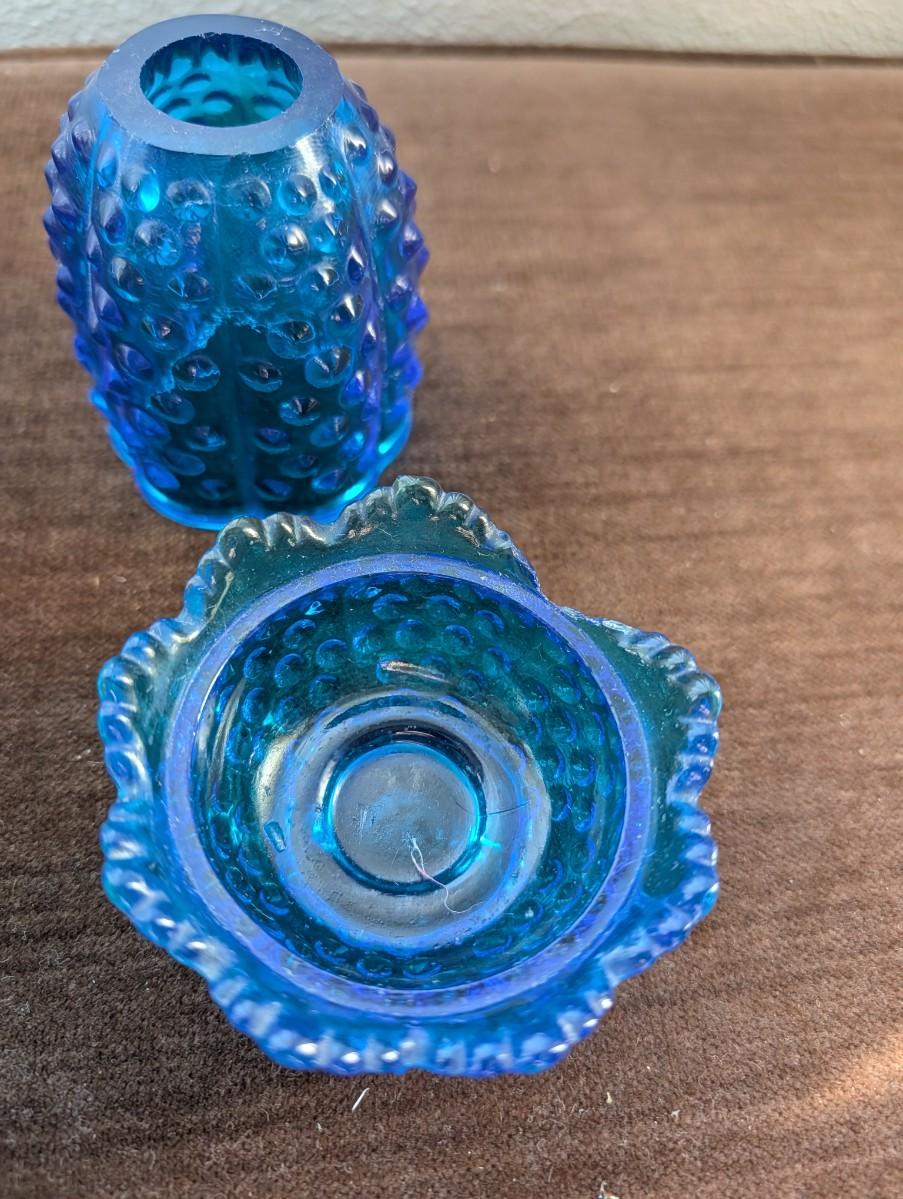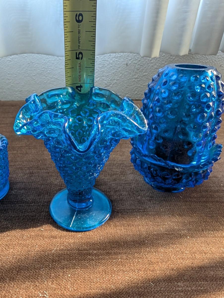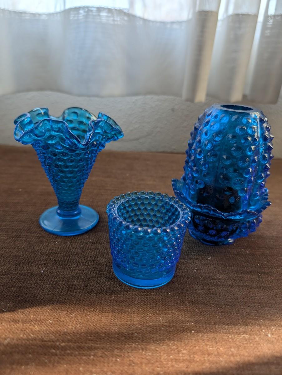 Three blue hobnail pieces