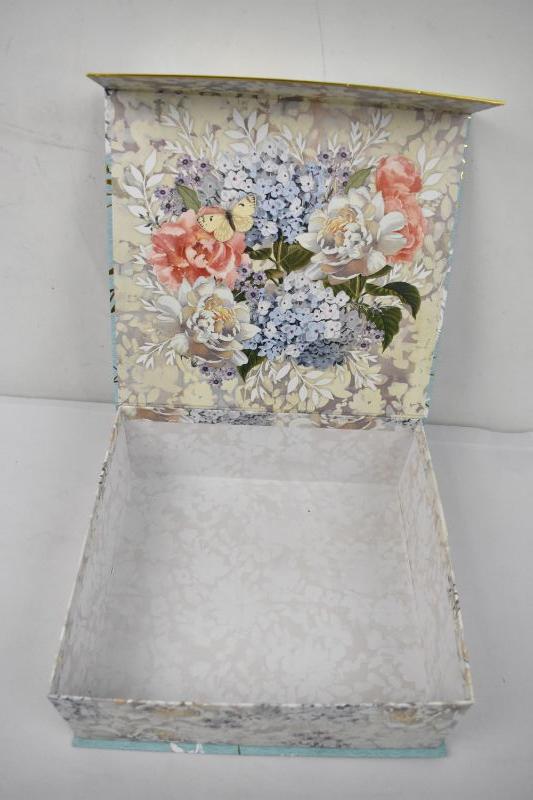 Blue Keepsake Box, Floral & Butterflies "Gratitude"