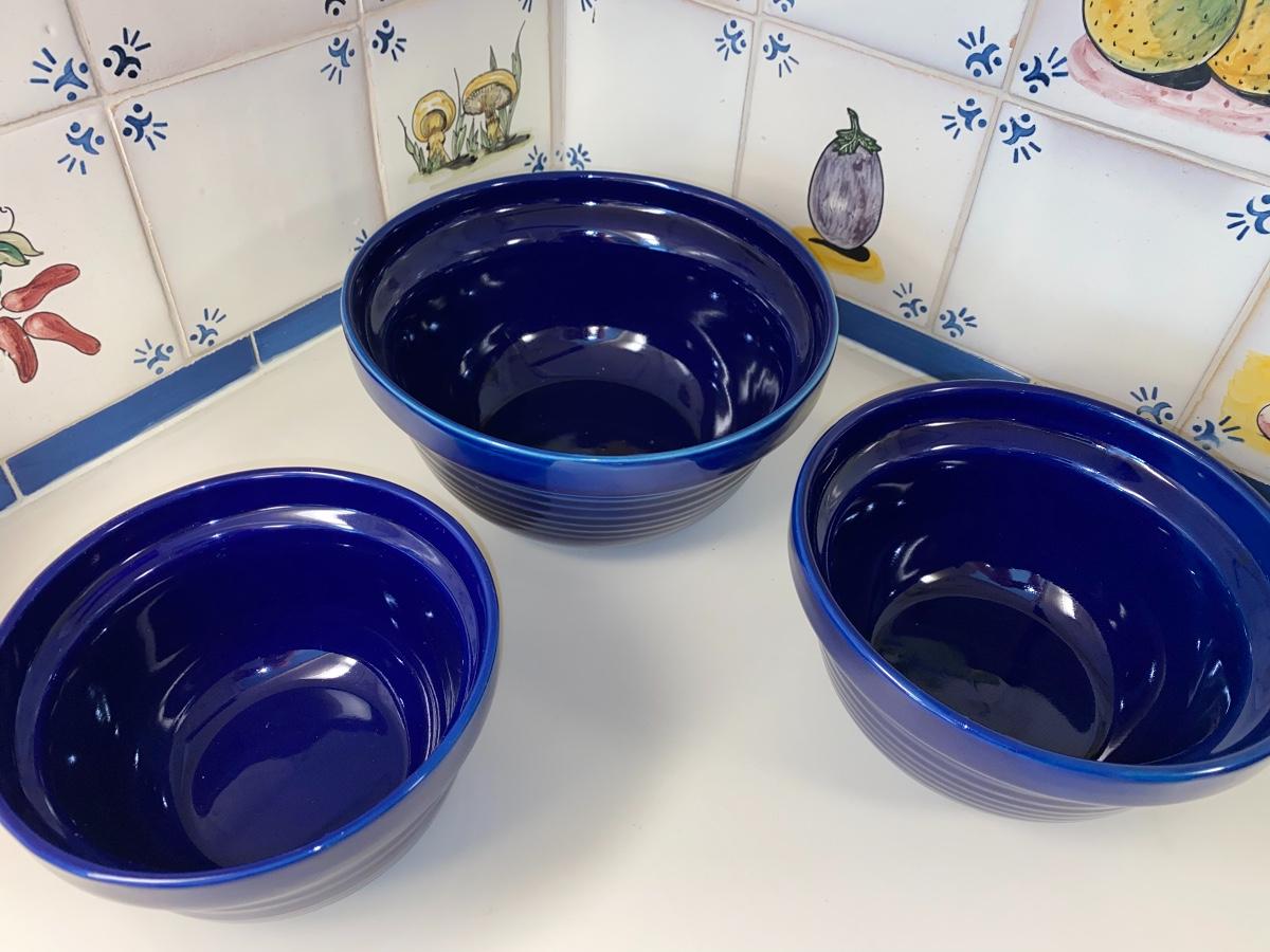 (3) Cobalt pottery Mixing Bowls