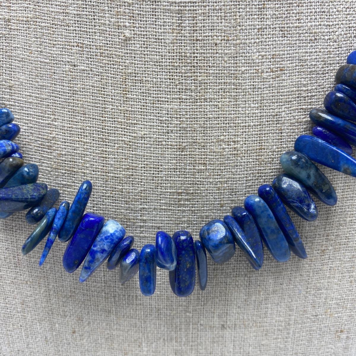 Stunning blue lapis stone necklace. Each stone moves individually. This statement piece can be shipped. Can not authenticate stones