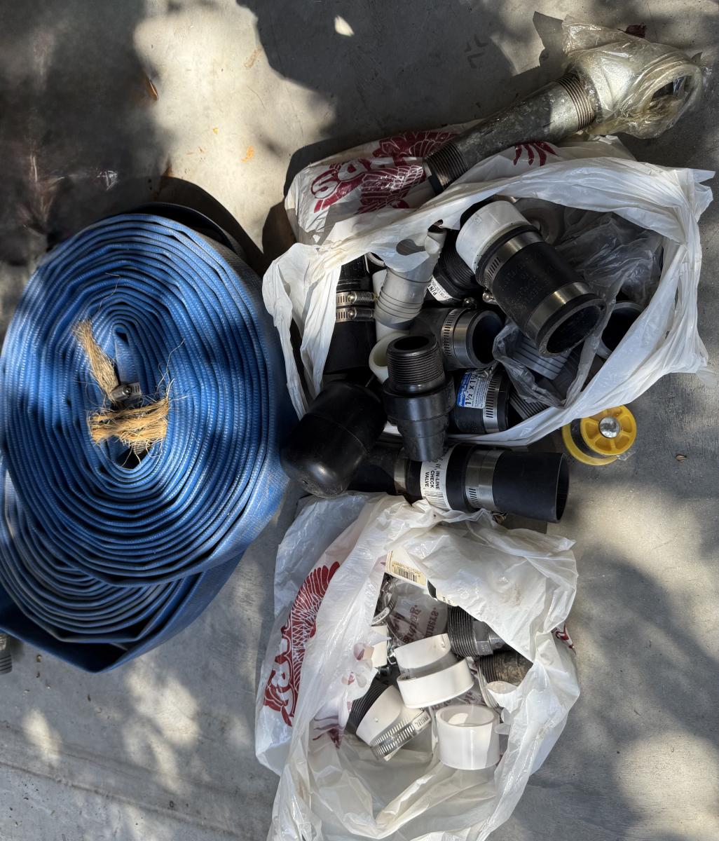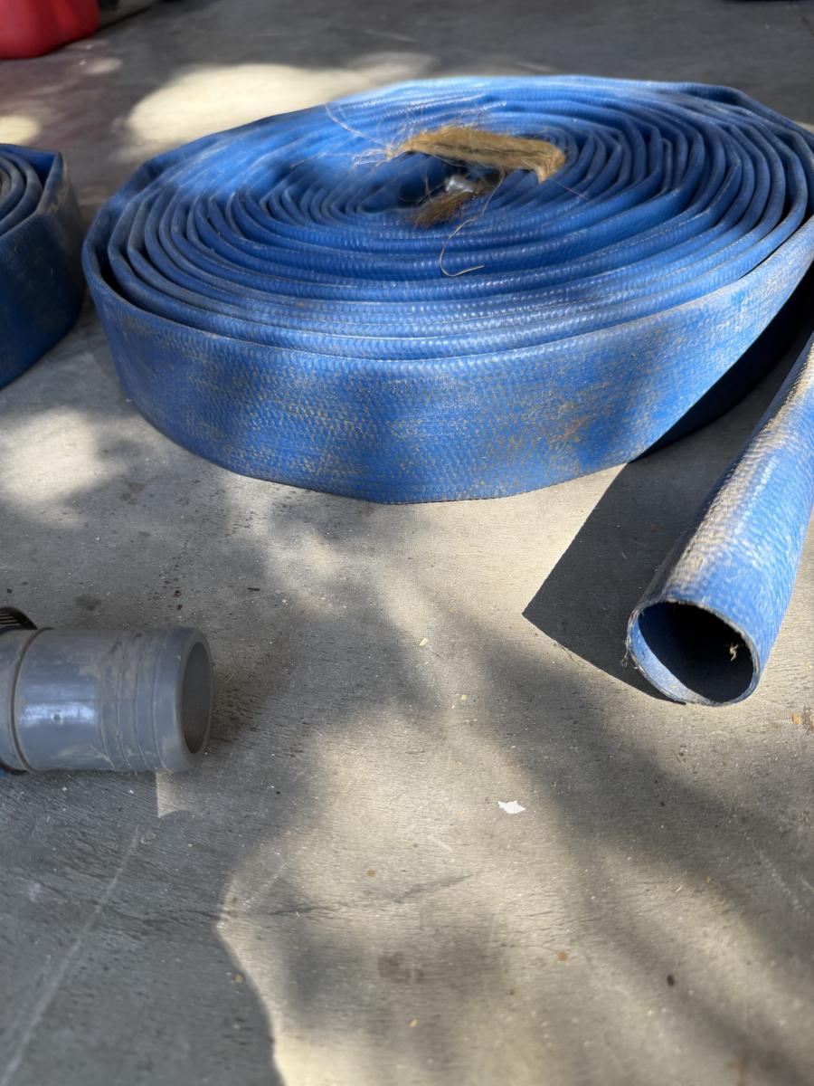 Blue lay flat discharge hoses w/PVC couplings PLUS