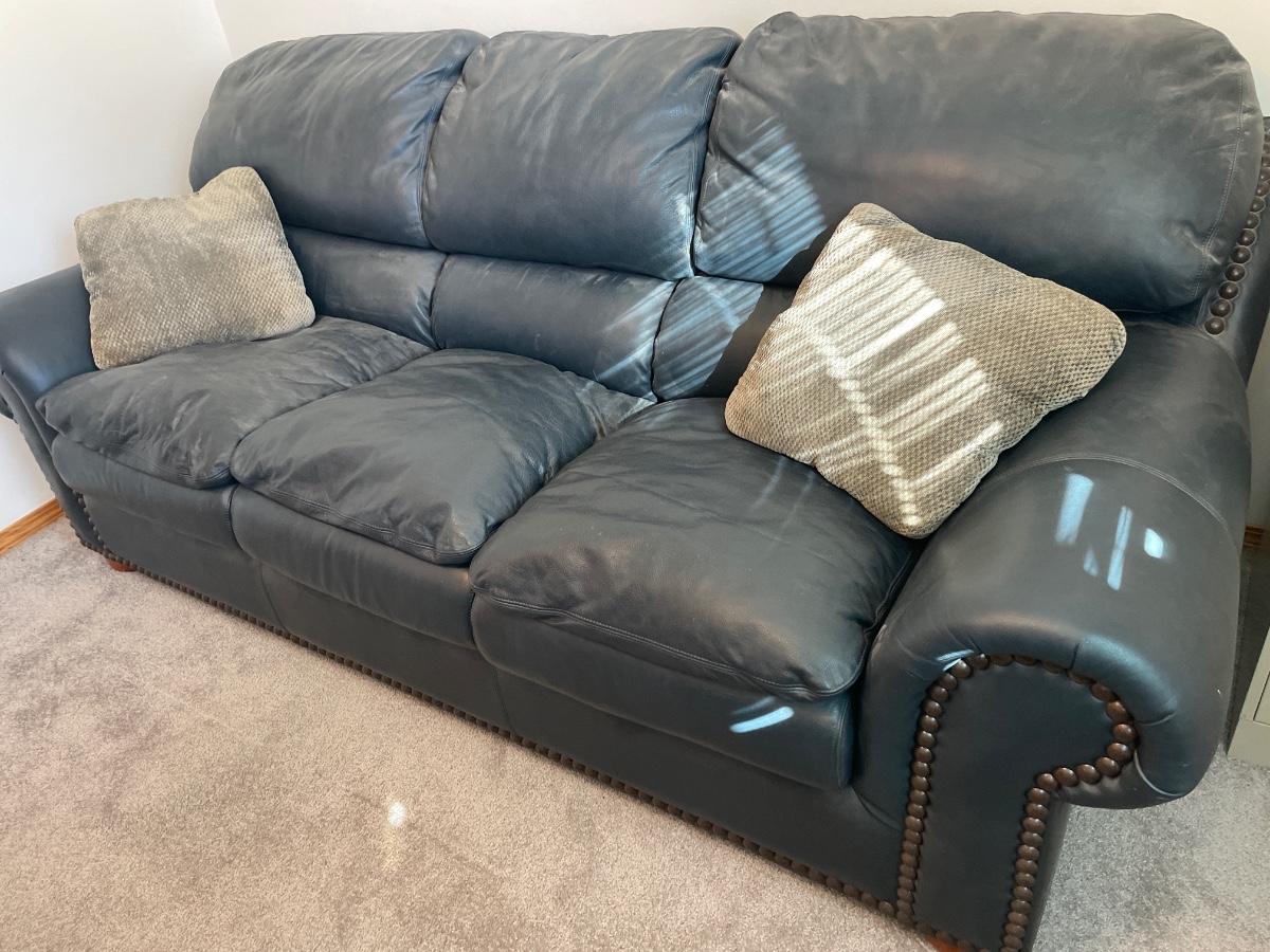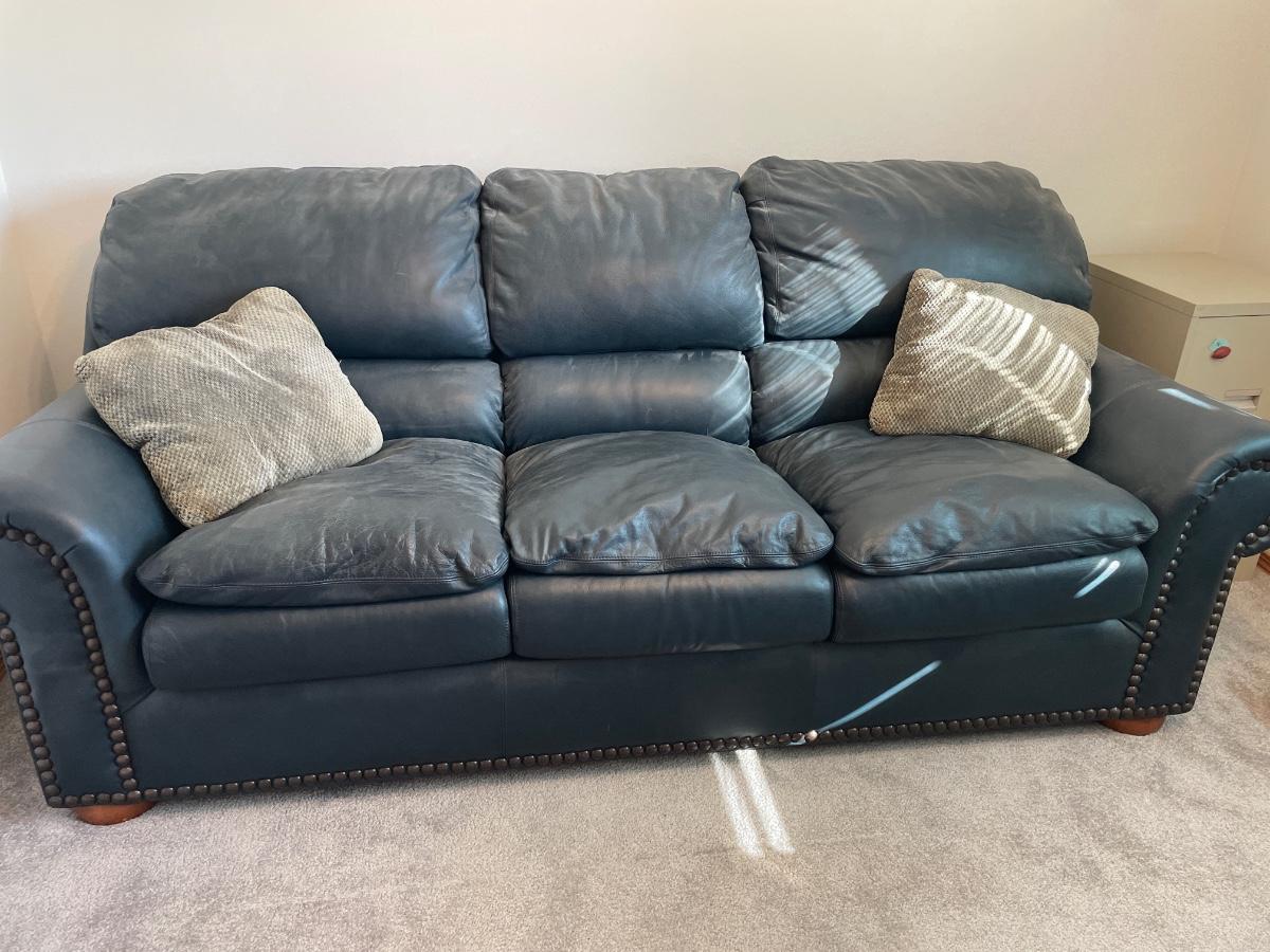 Blue leather studded sofa sleeper