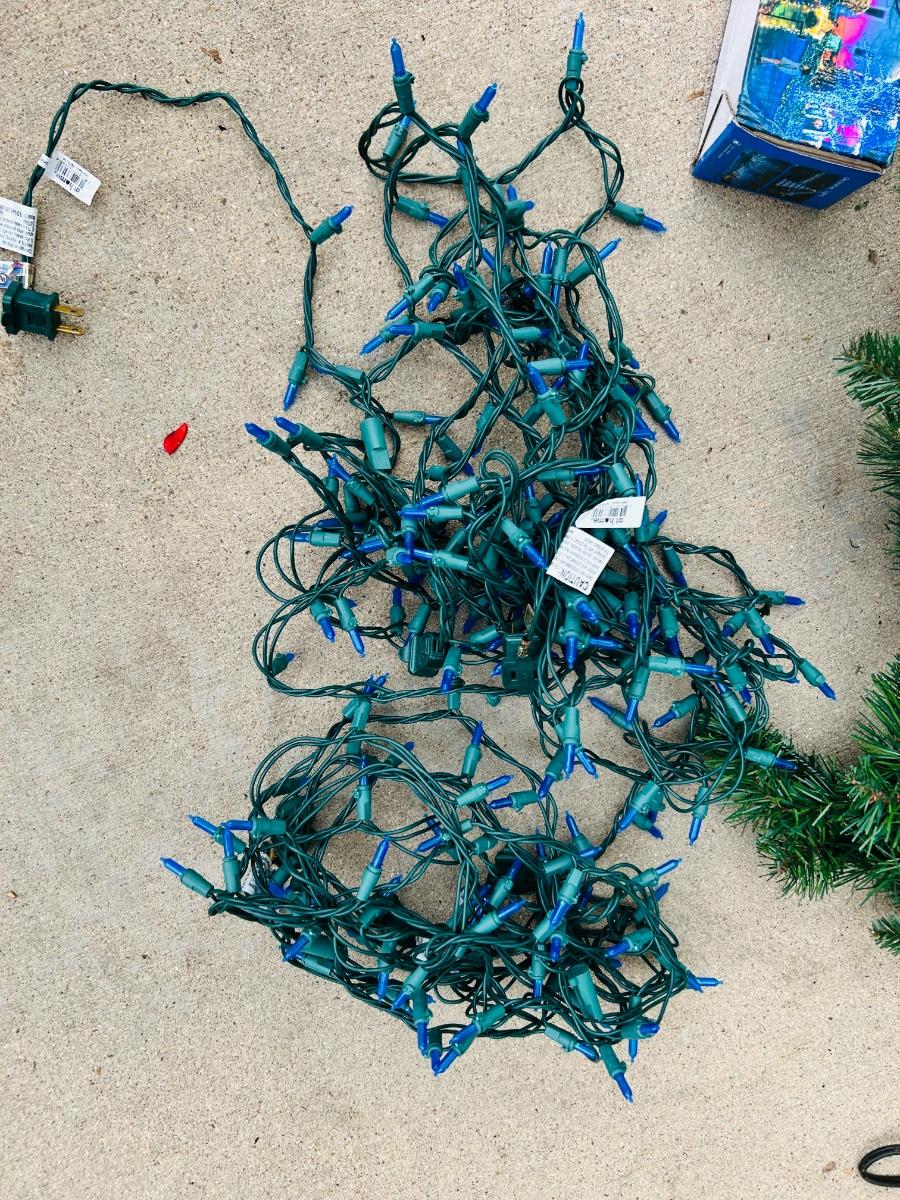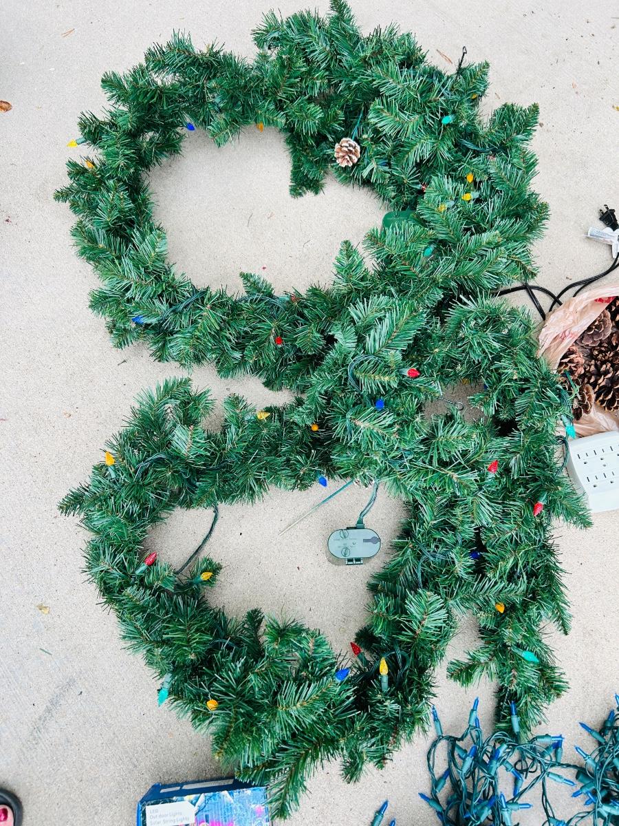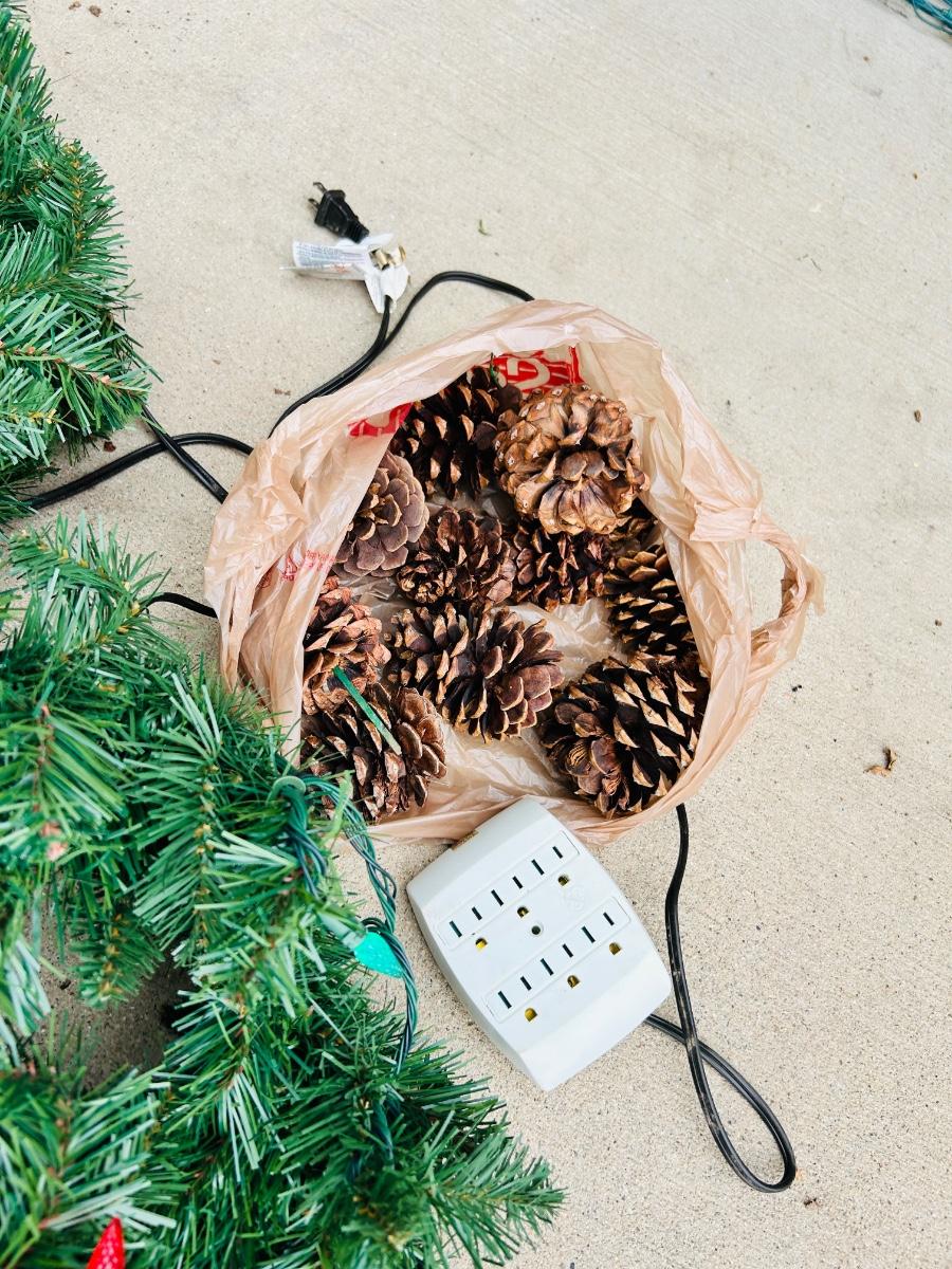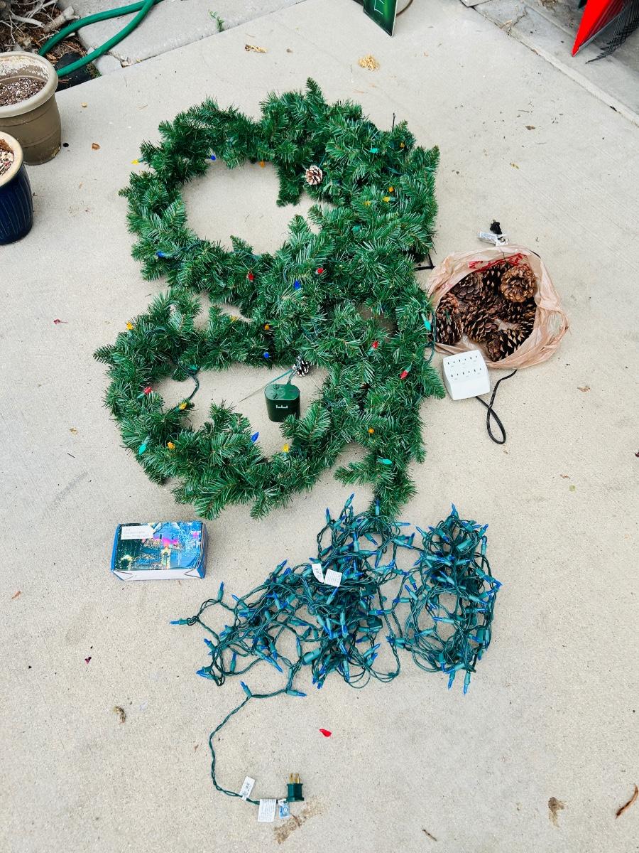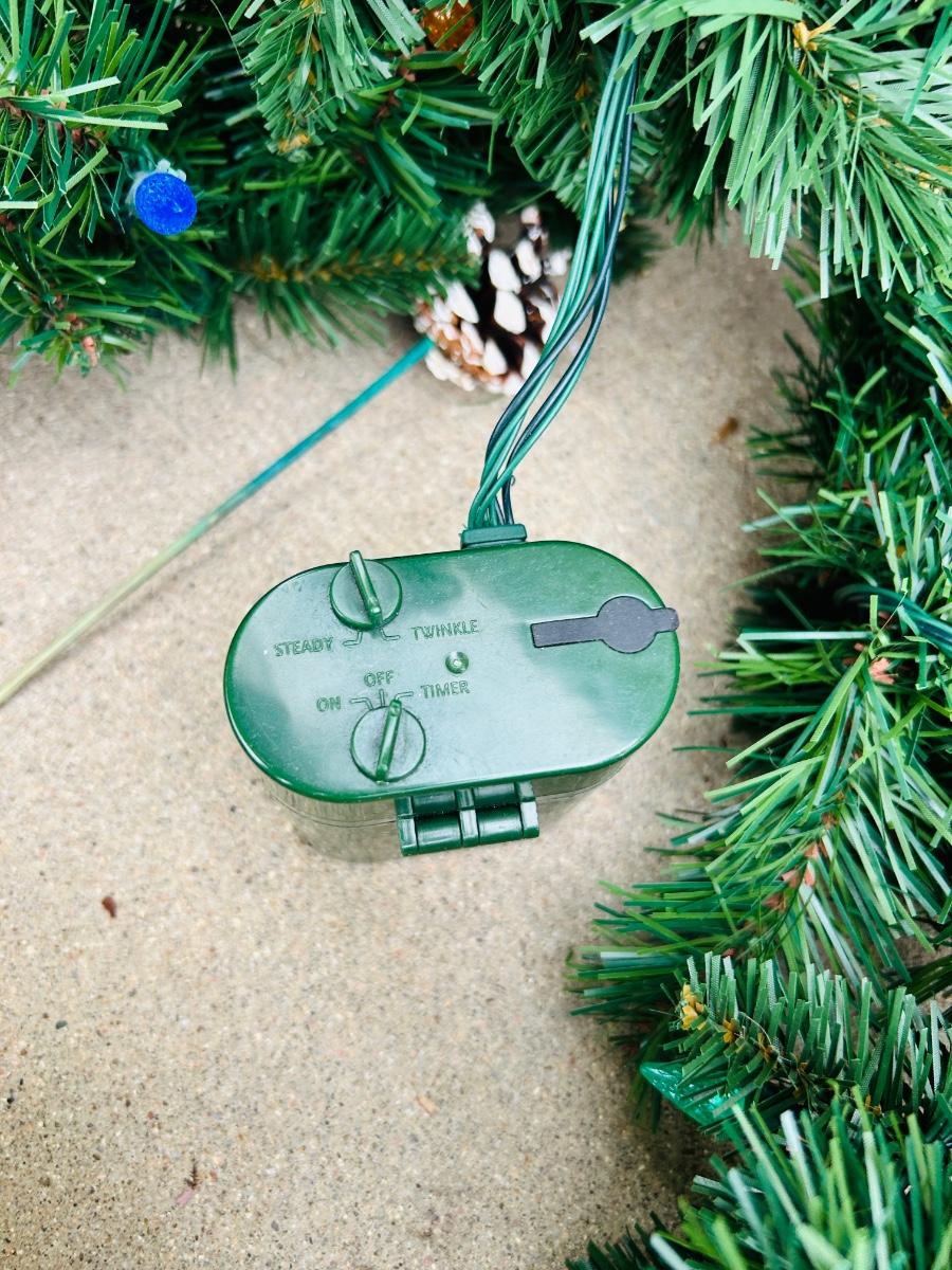BLUE LED CHRISTMAS LIGHT, PRELIT GARLAND WITH DECORATIVE PINE CONES