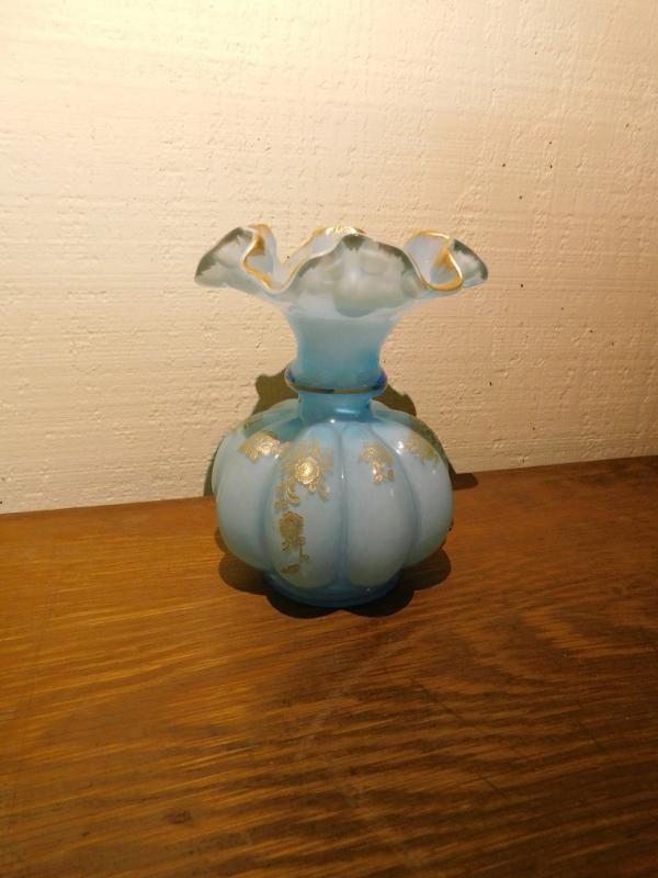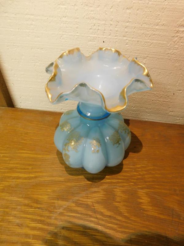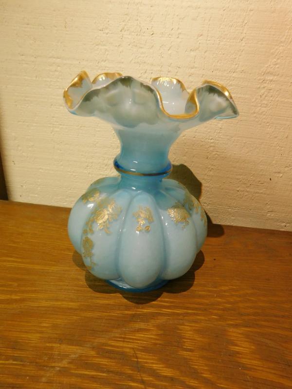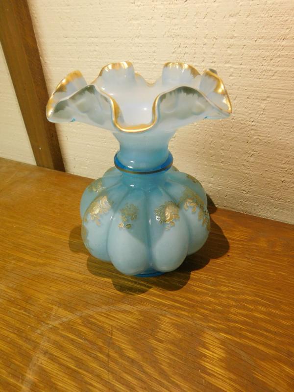 Blue Melon Base Ruffled Edge Fenton Vase