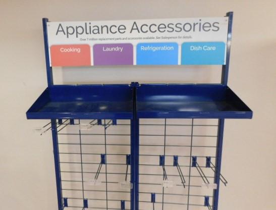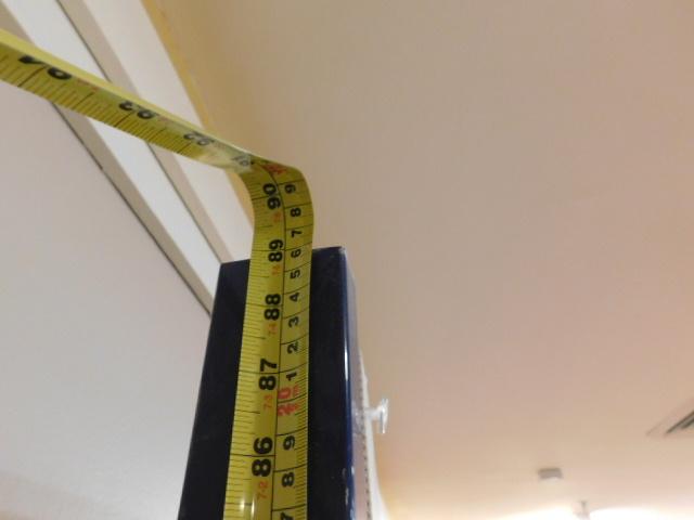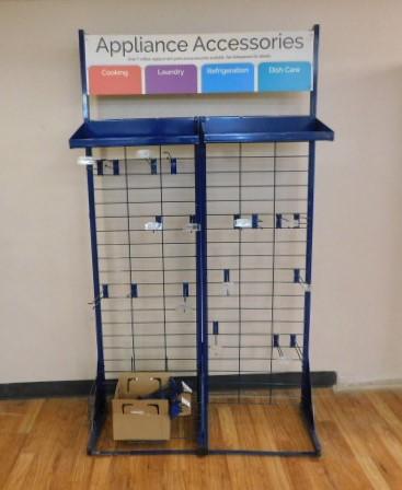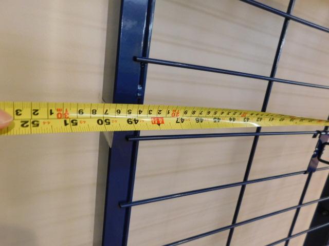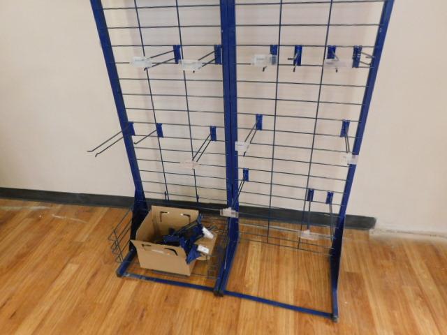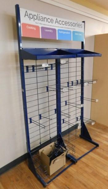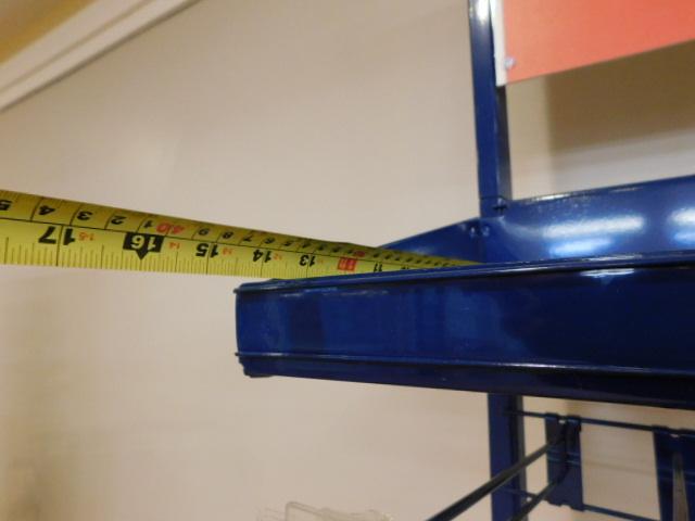 Blue Metal Display Rack 50"x14"x89". This is a high visibility display that has been kept clean and well maintained. Has like new appearance. Sturdy.