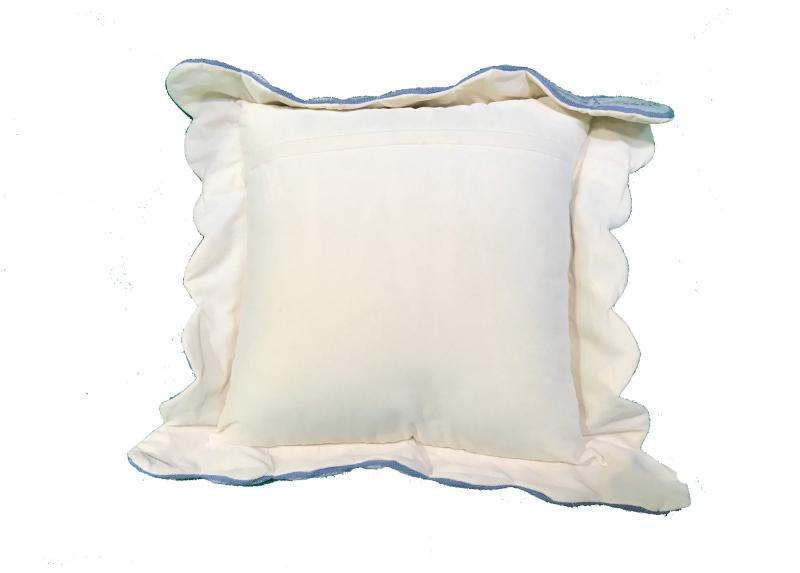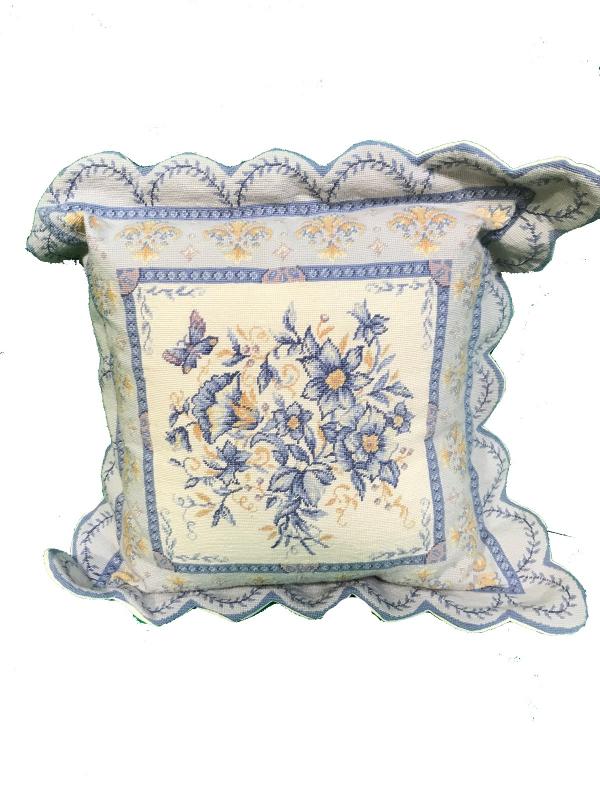 Beautiful Scalloped edge Floral Needlepoint Pillow in Blue and Cream