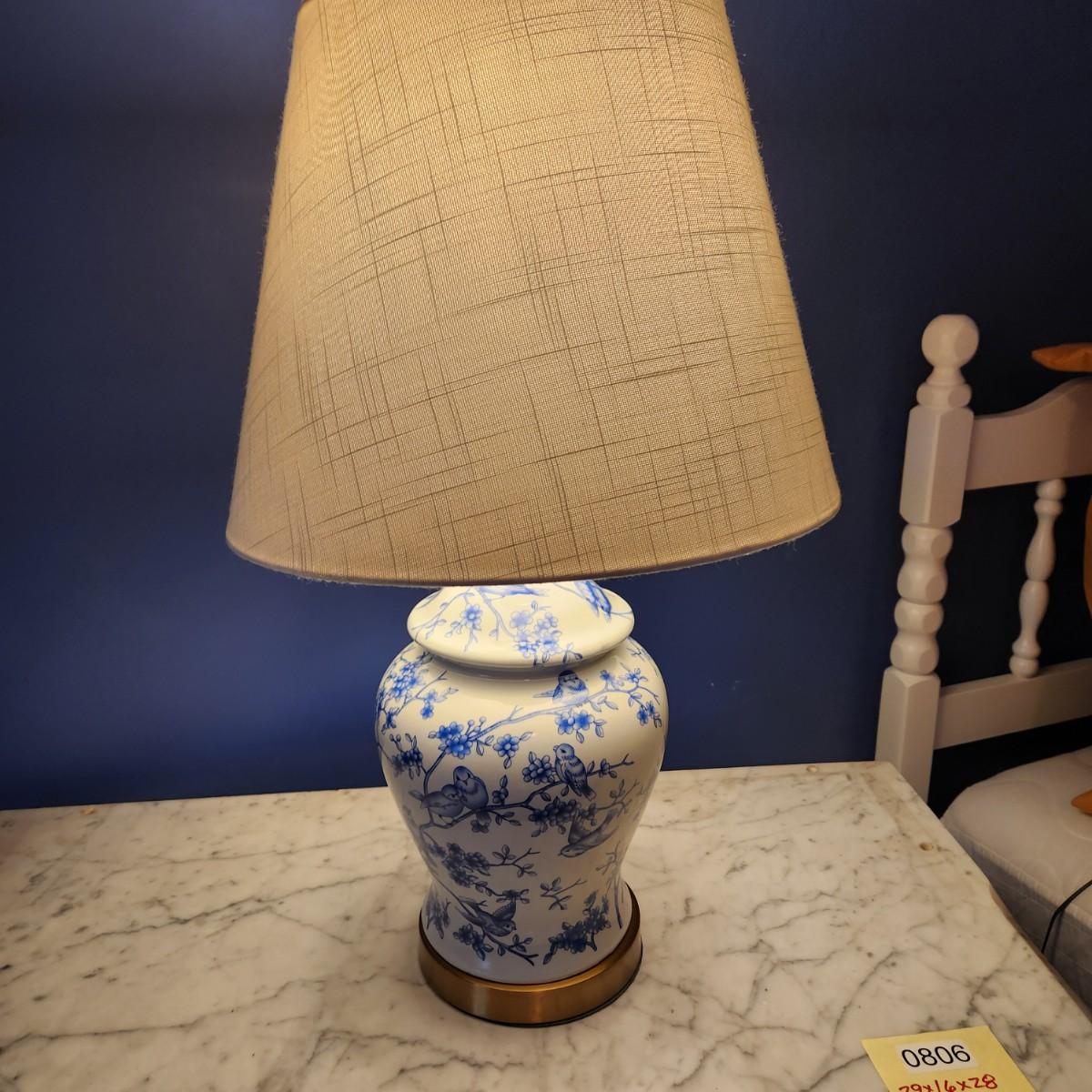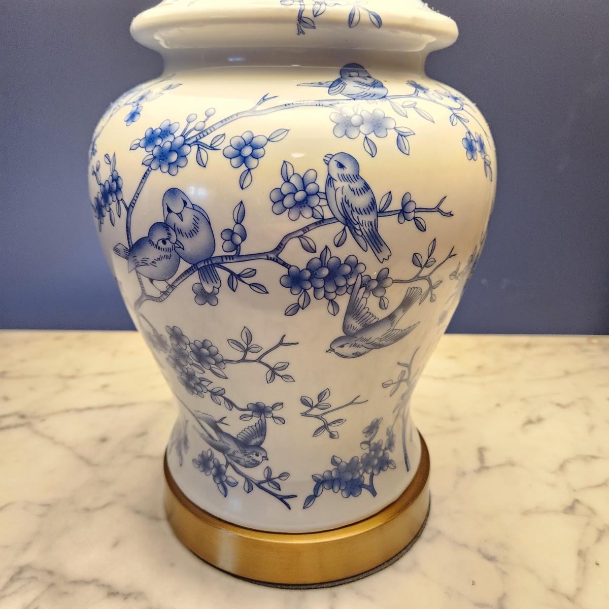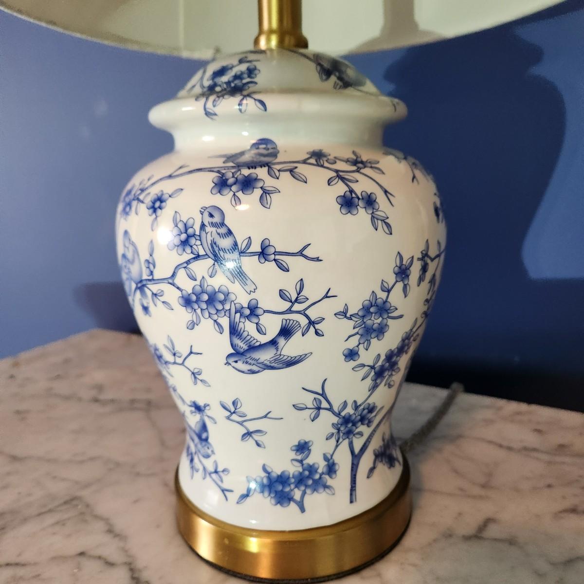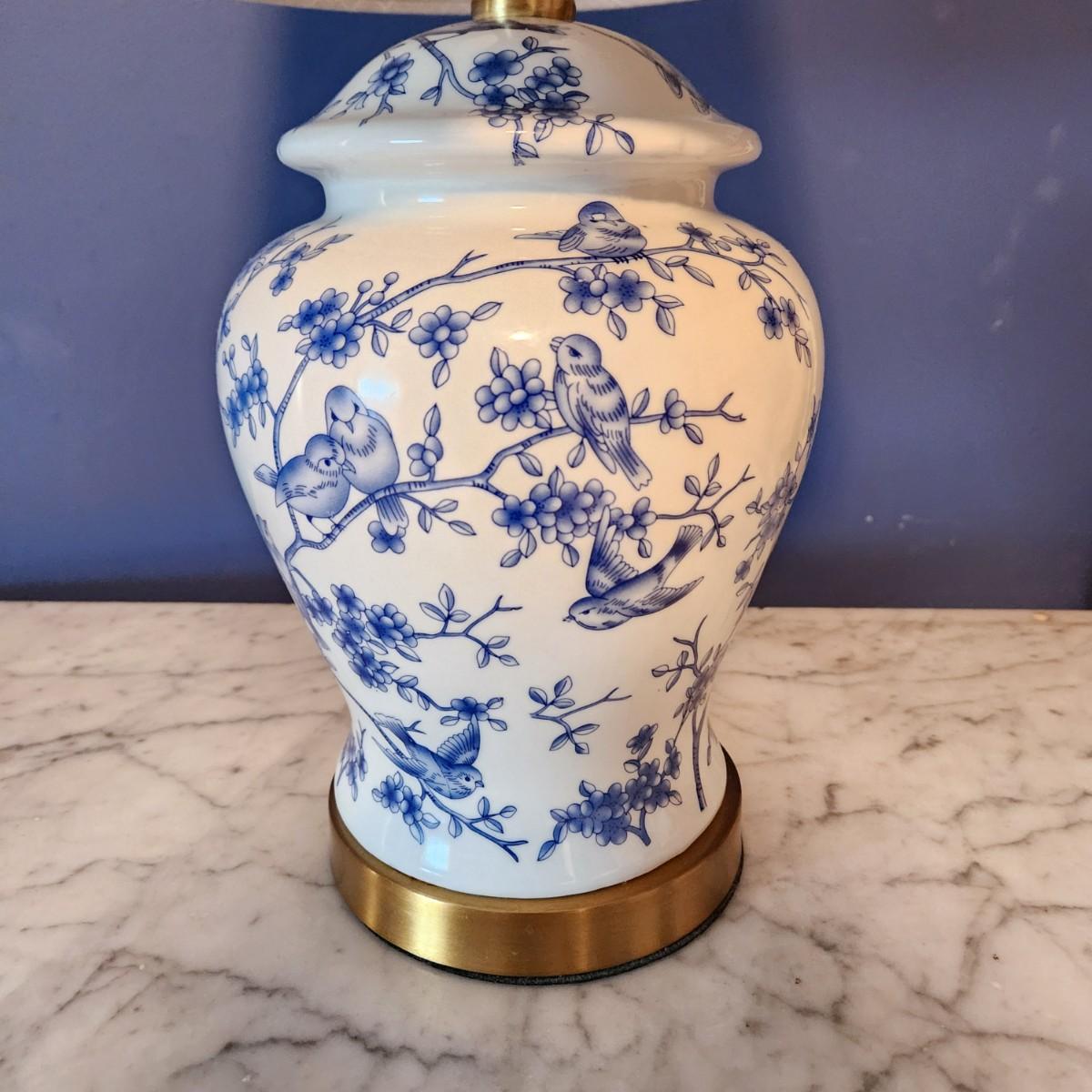 Jonathan Y Blue on White Floral Birds Table Lamp