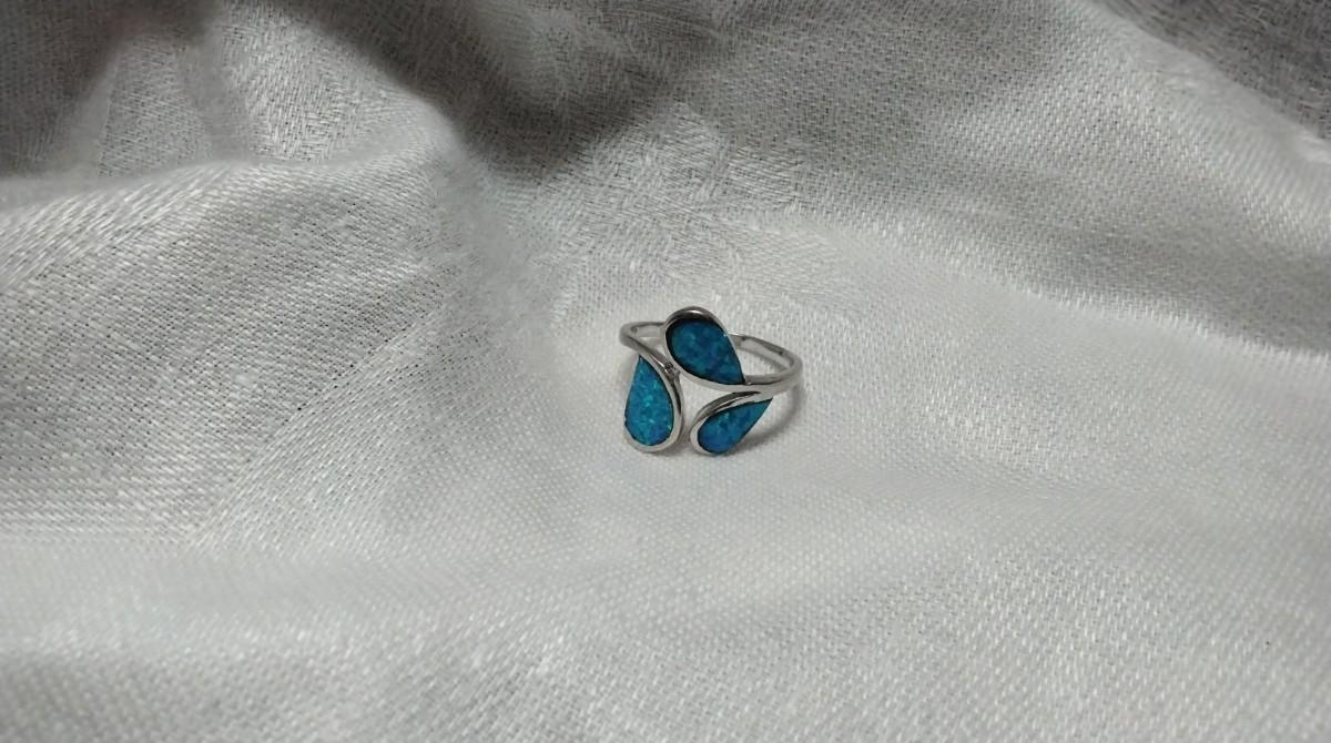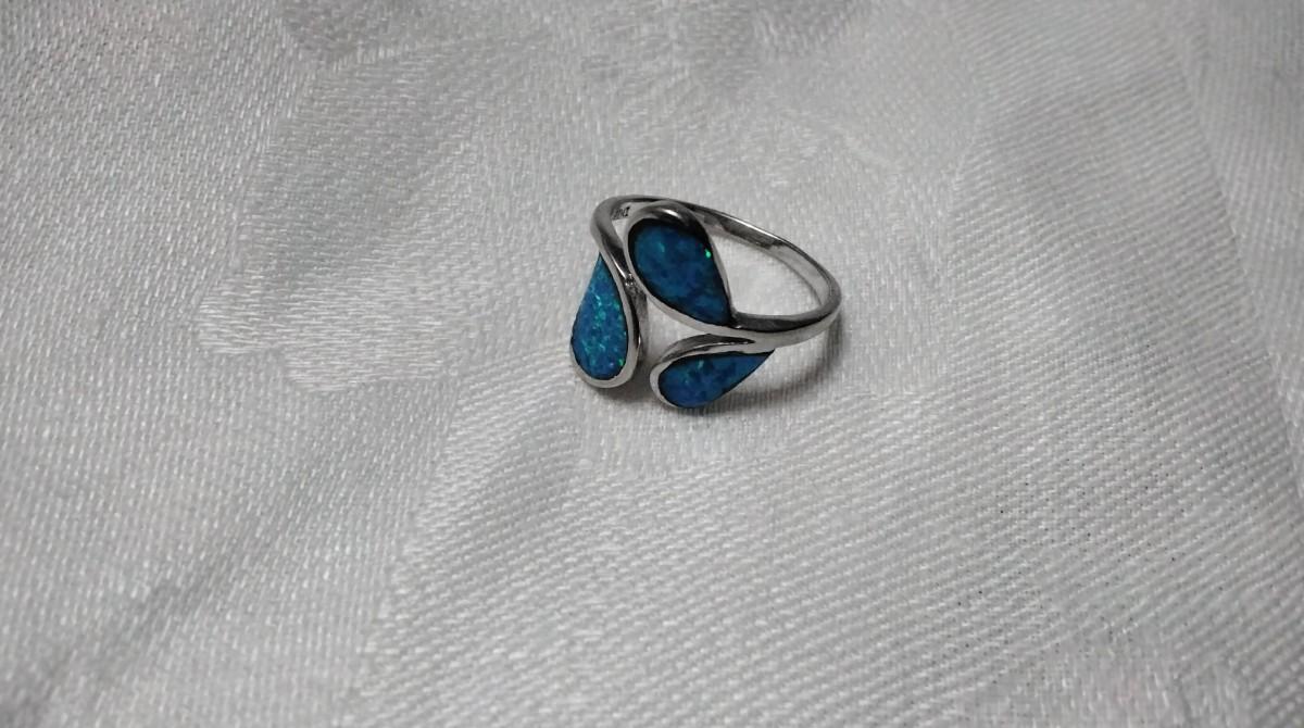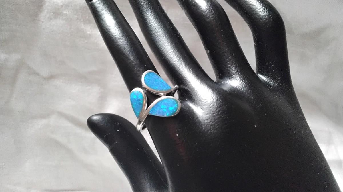Blue fire opals have to be one of the prettiest gems! This is an eyecatching ring!
