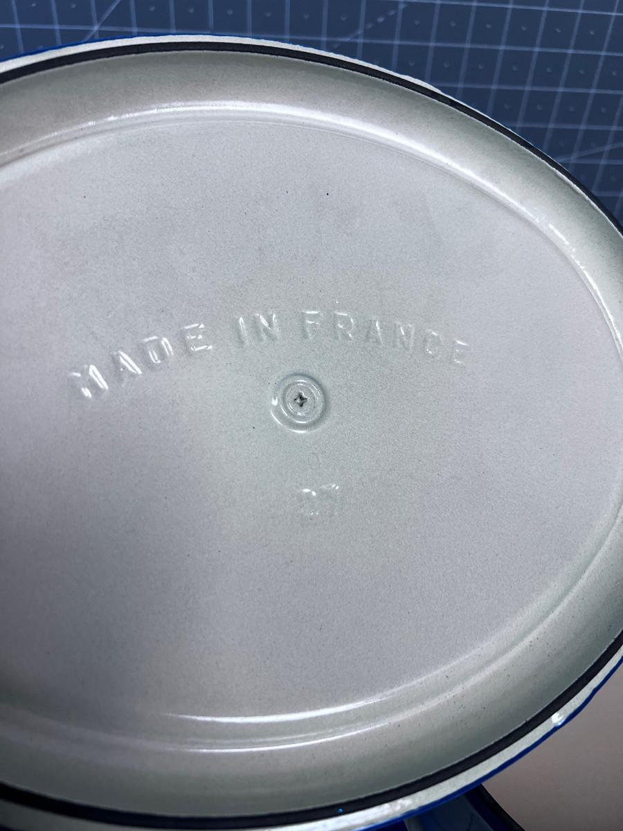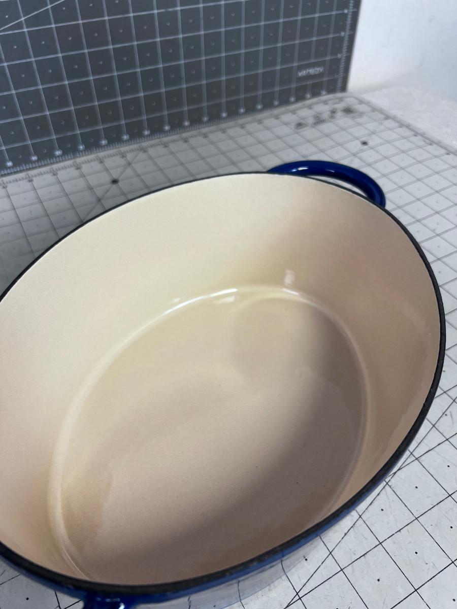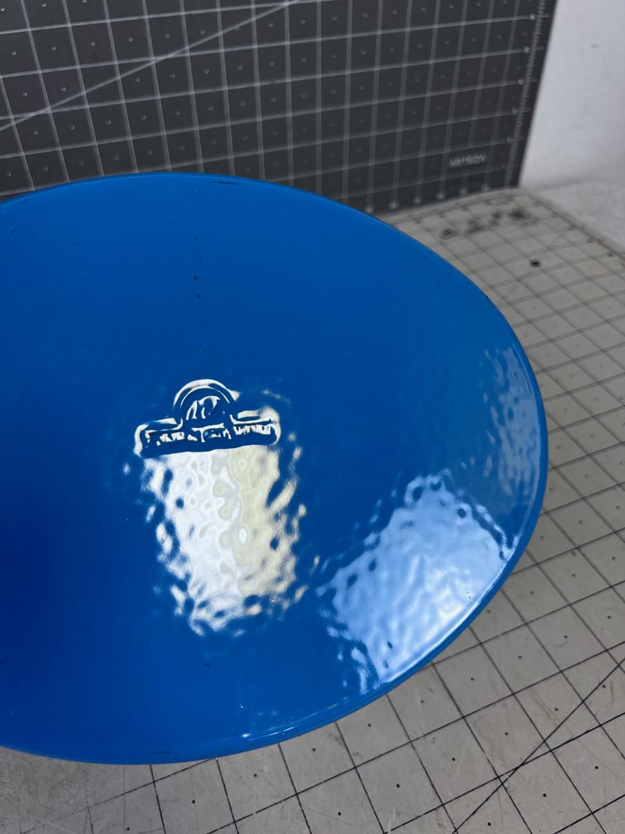 Blue Oval Cast Iron Enamel NEVER USED with ROOSTER HANDLE Pot and Lid