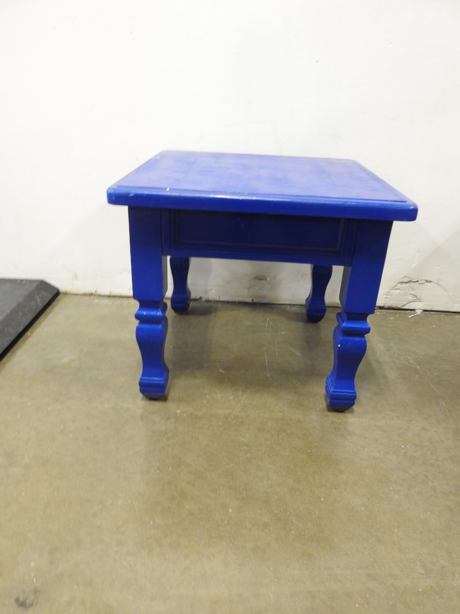 Blue Painted Wooden Table, Child Size, Good Condition 26" x 26" x 24", Minor Scratches