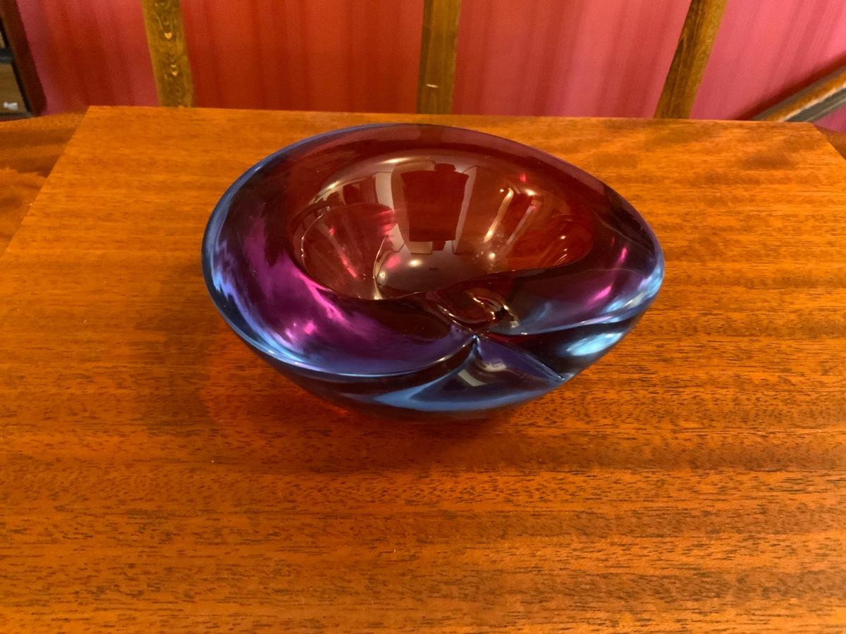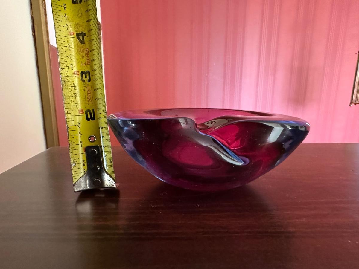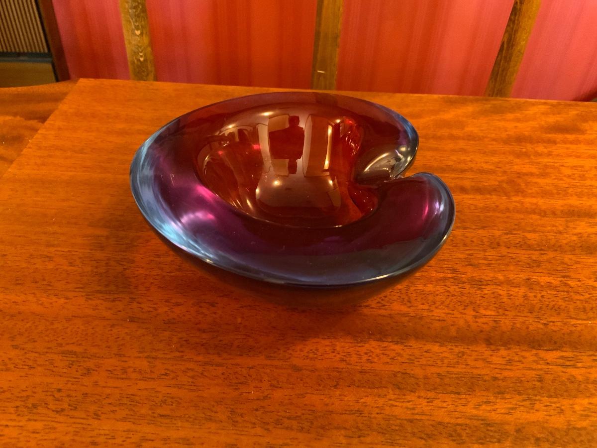 Blue Pink Purple Sommerso Murano Glass Ashtray by Flavio Poli Seguso Italy 1960’s. Does have 1 flaw on rim. See Pics
