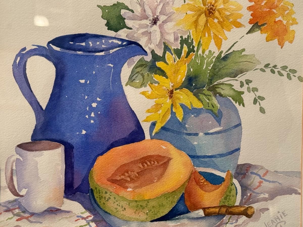 Blue Pitcher with Cantaloupe- 15" x 15"