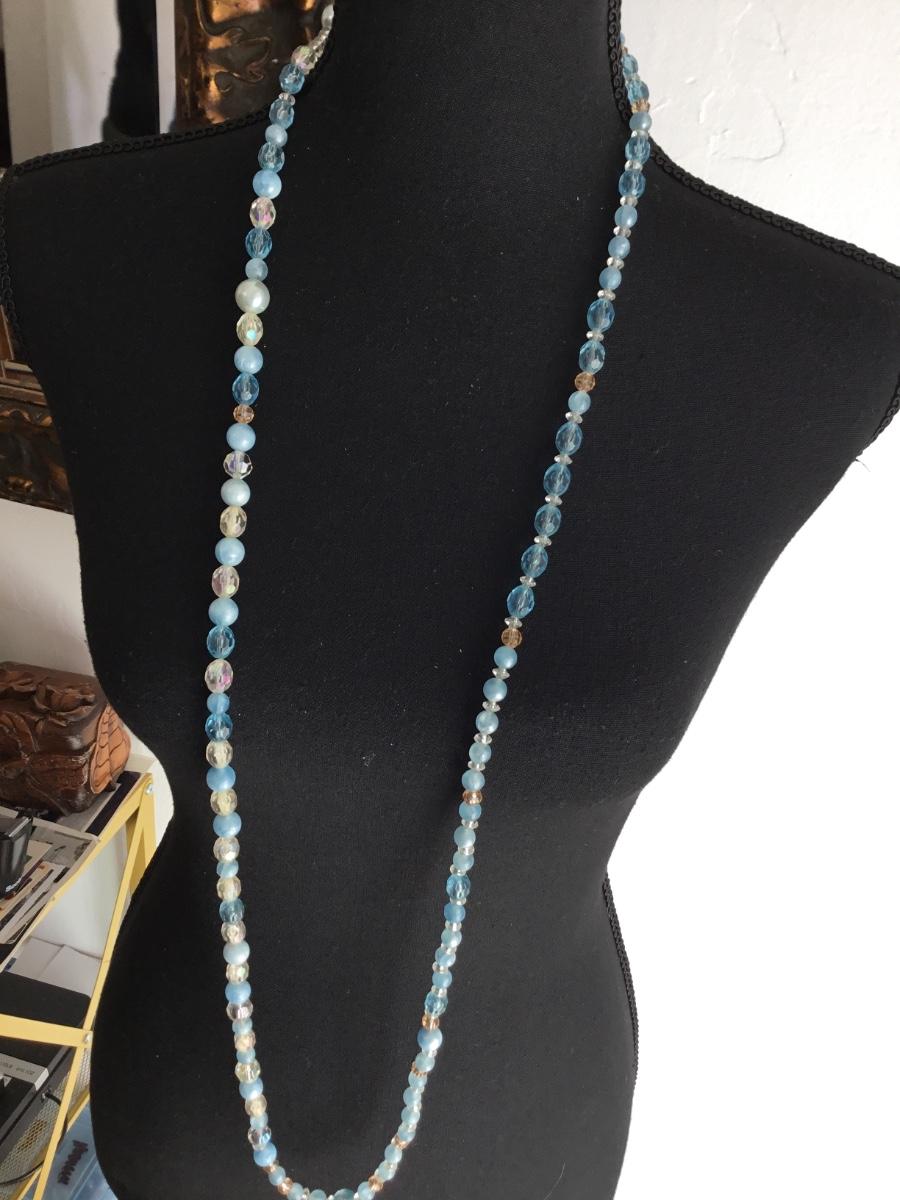Blue plastic beaded fashion necklace