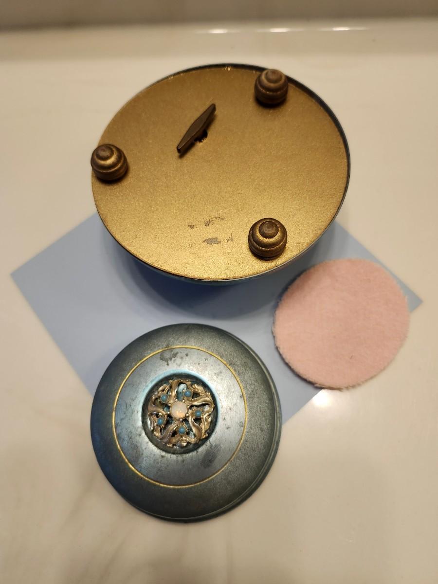 Unbranded vintage Silvertone Powder Puff – Trinket Box- Music Box (wind up)
