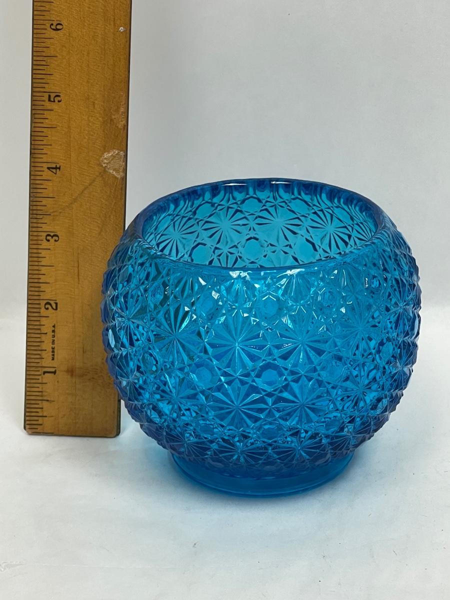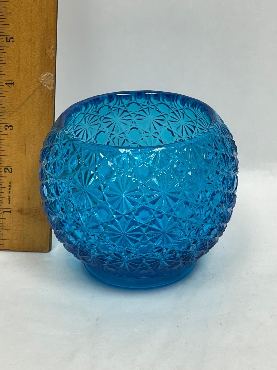 Blue Pressed Glass Bowl-shaped Candle Holder