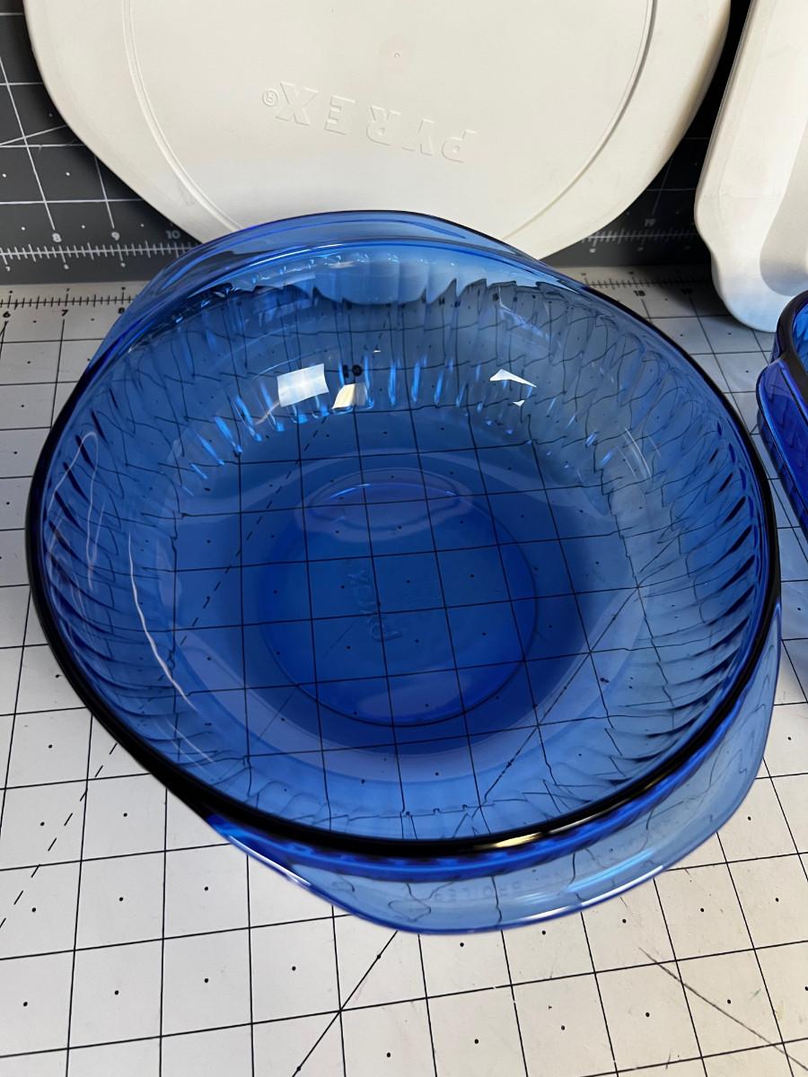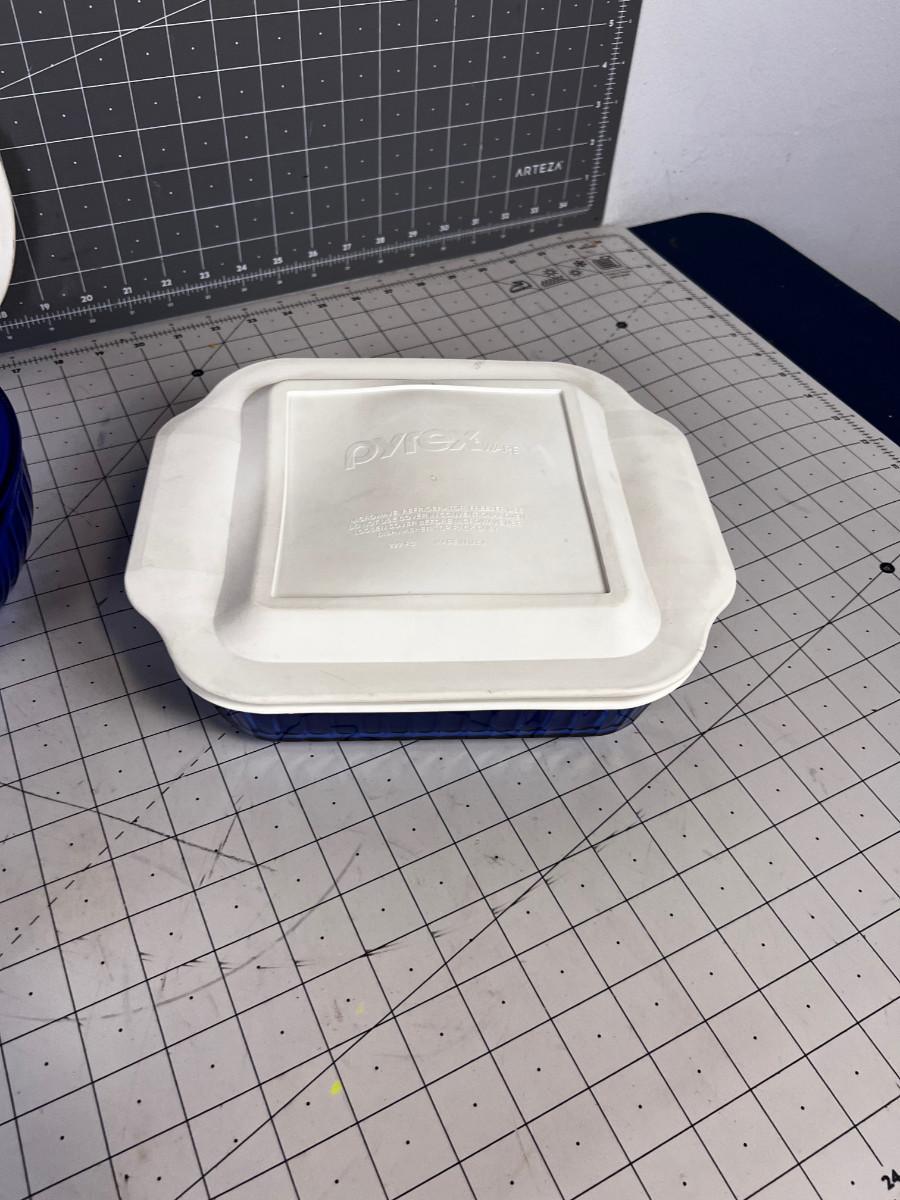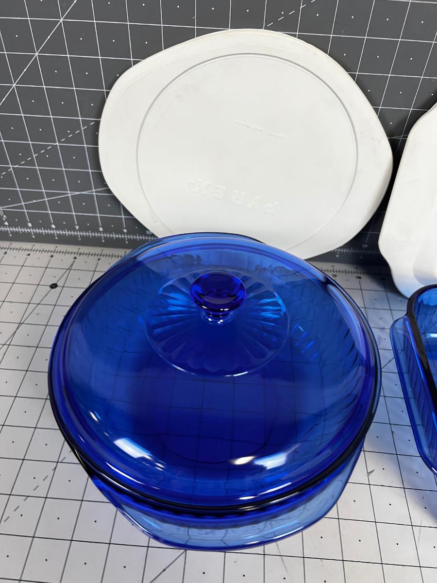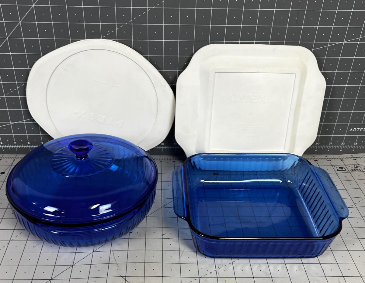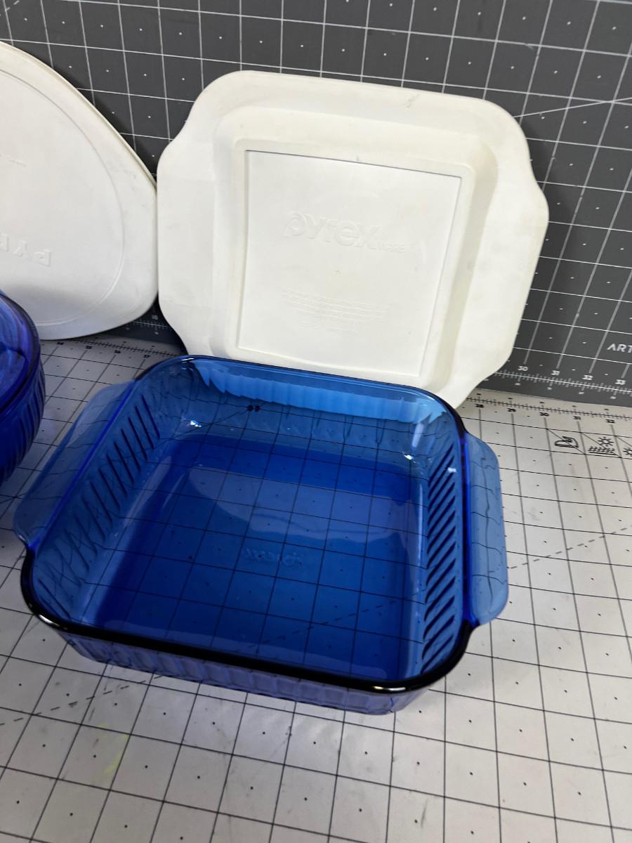 BLUE Pyrex Dishes plus 1 Glass Lid