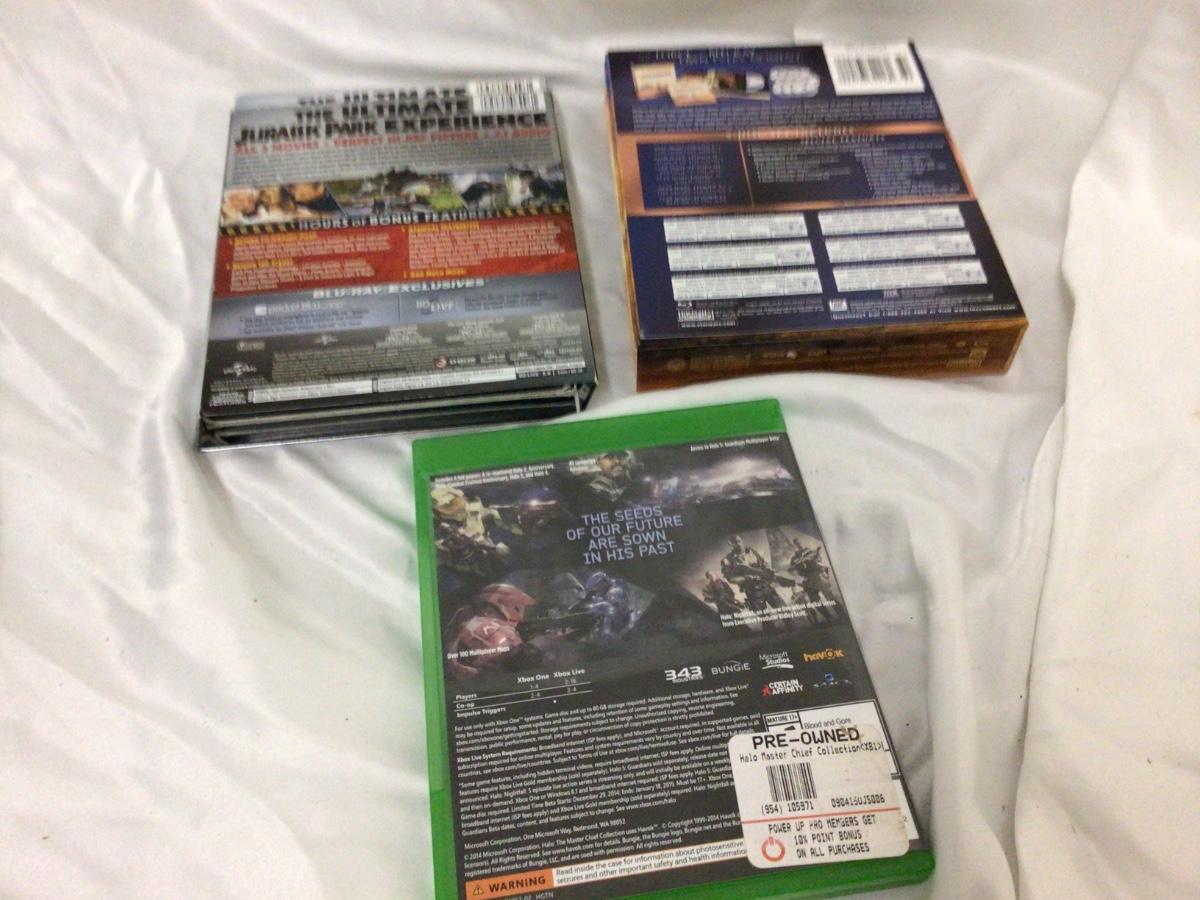 You get blue ray Starwars set, Jurassic Park Blue Ray Ultimate trilogy and Halo for Xbox One.