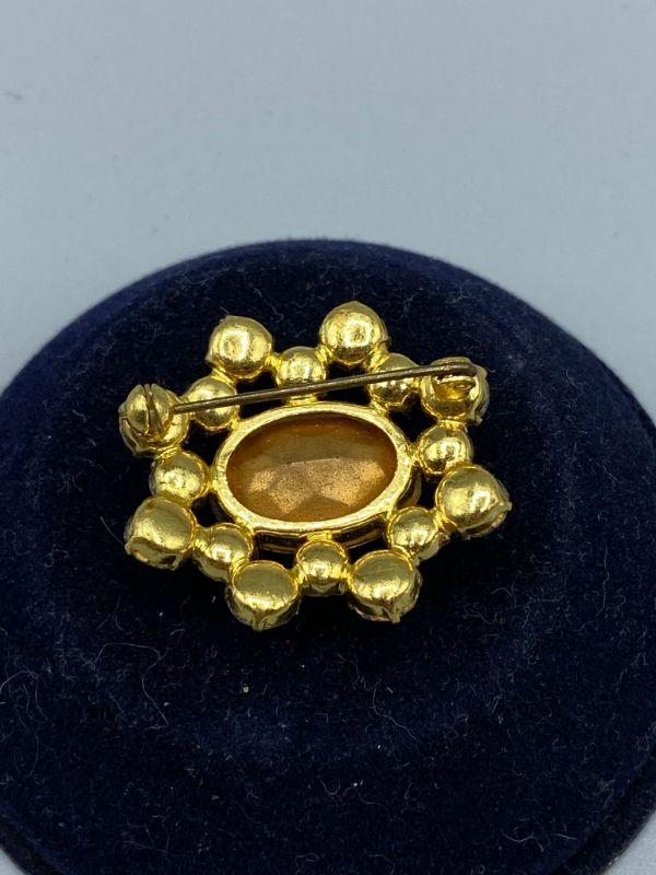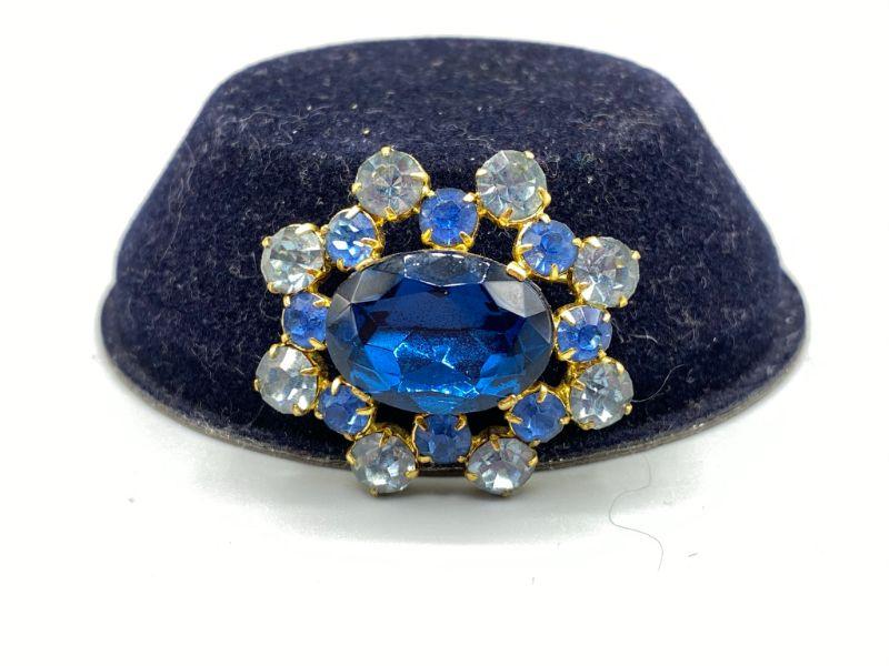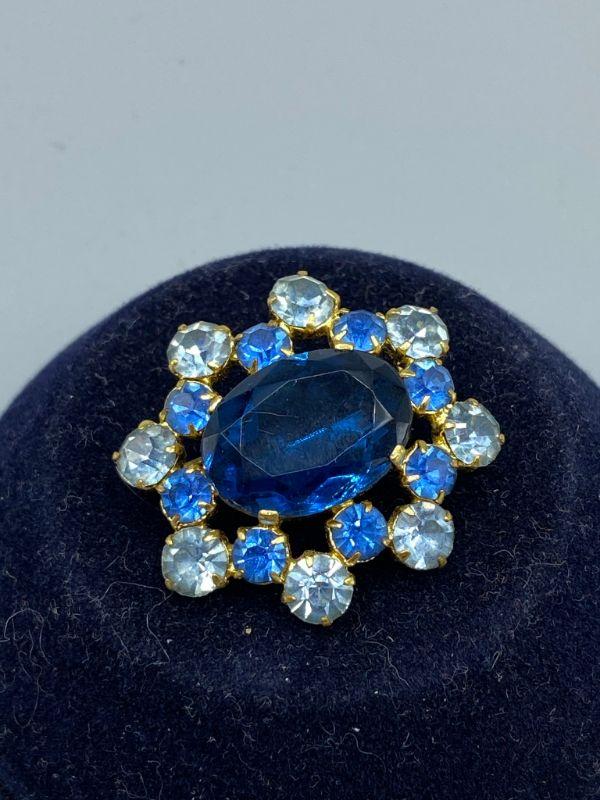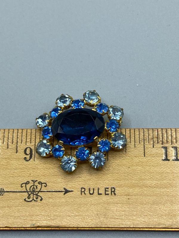 Small blue rhinestone pin. Gold tone setting. About 1.25" size.