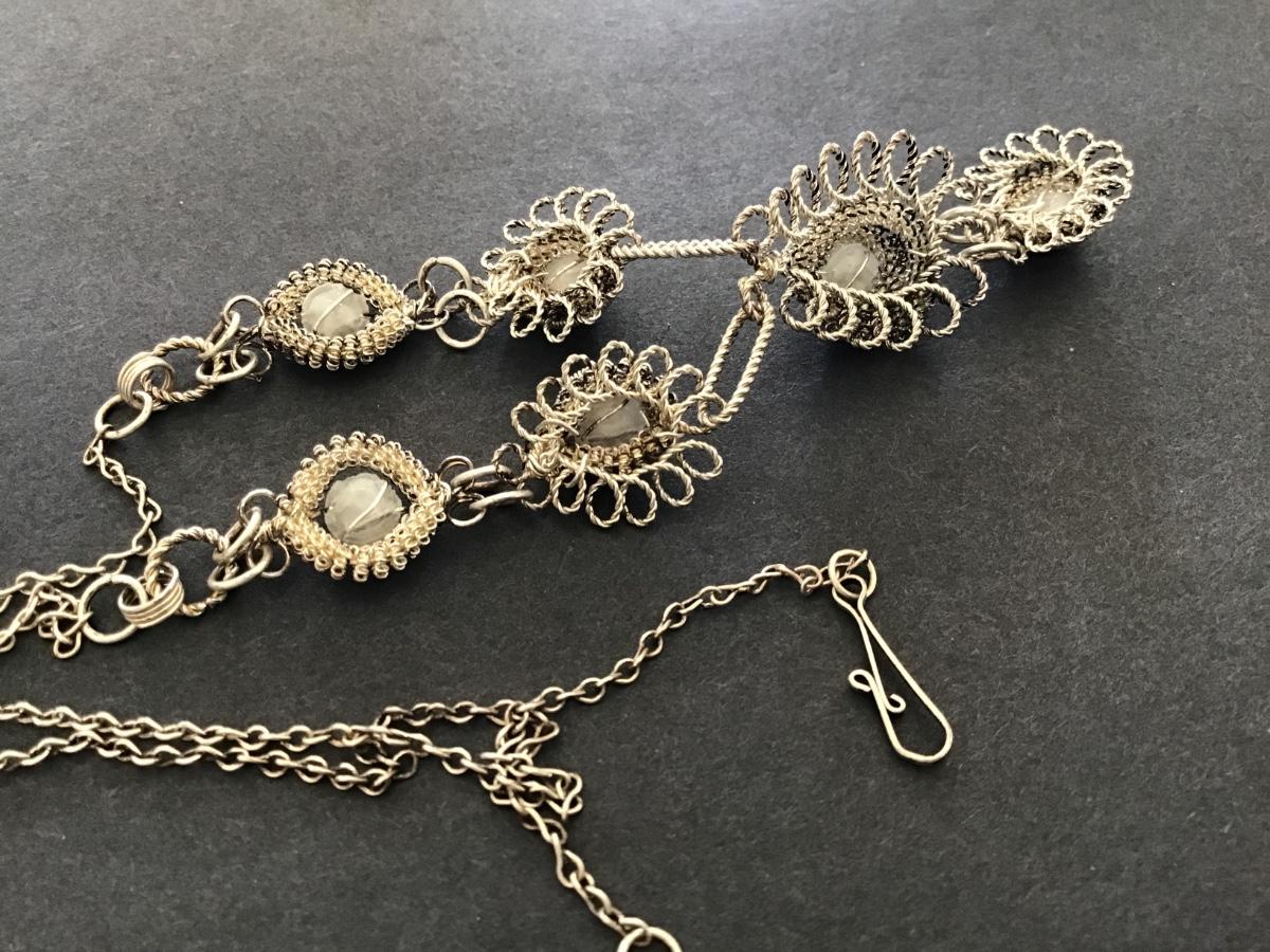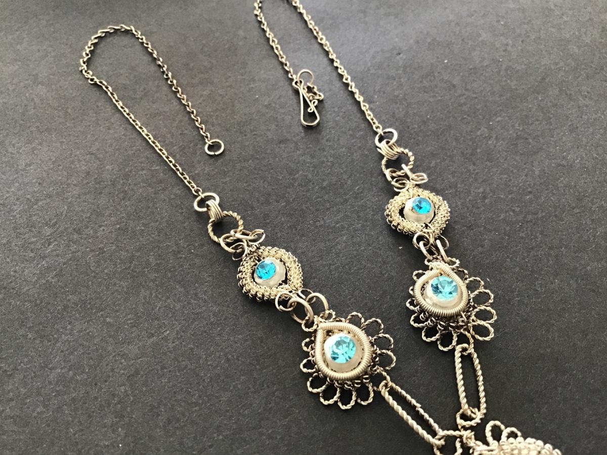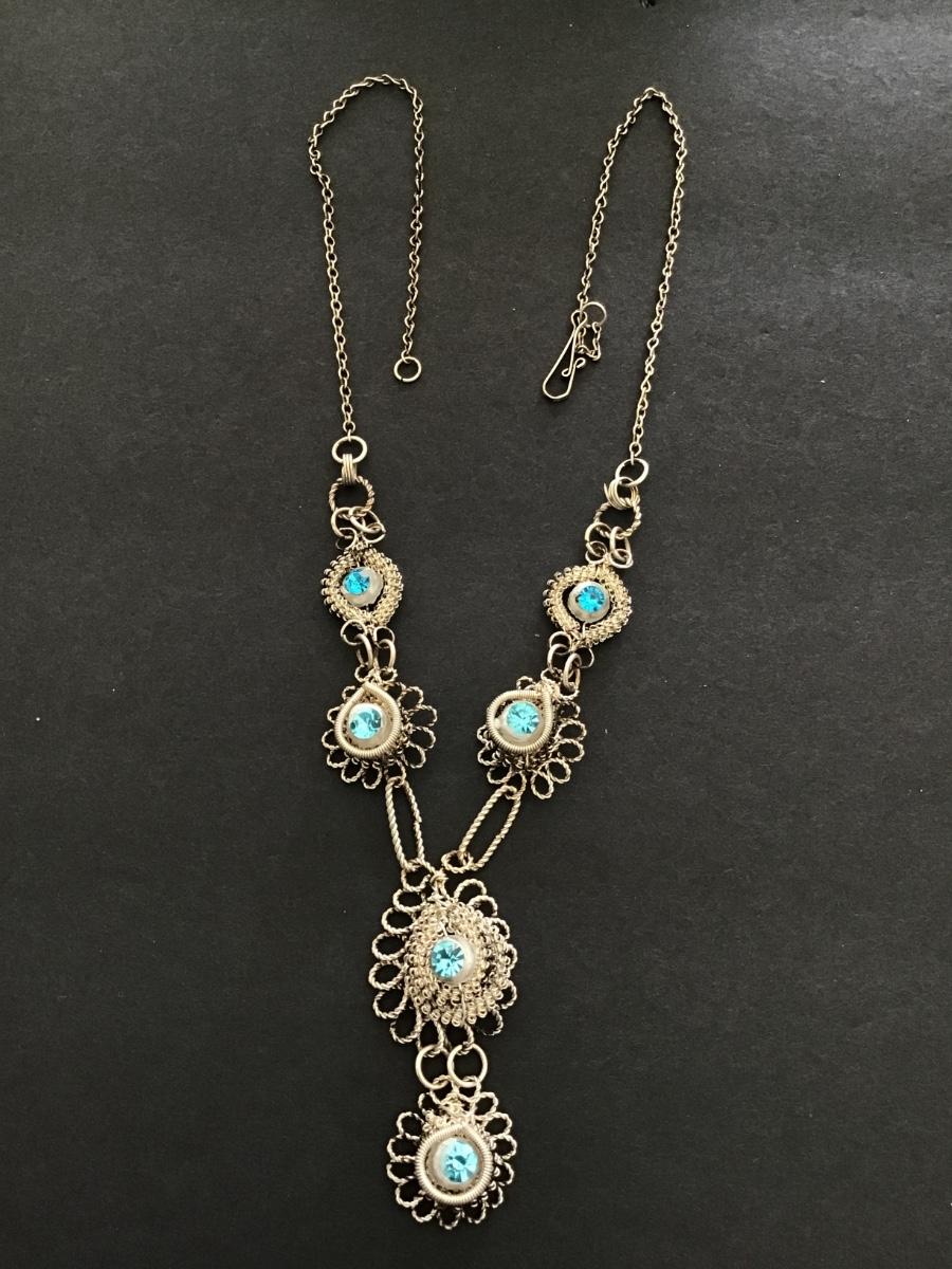 Blue Rhinestones SilverTone Wire wrap Necklace