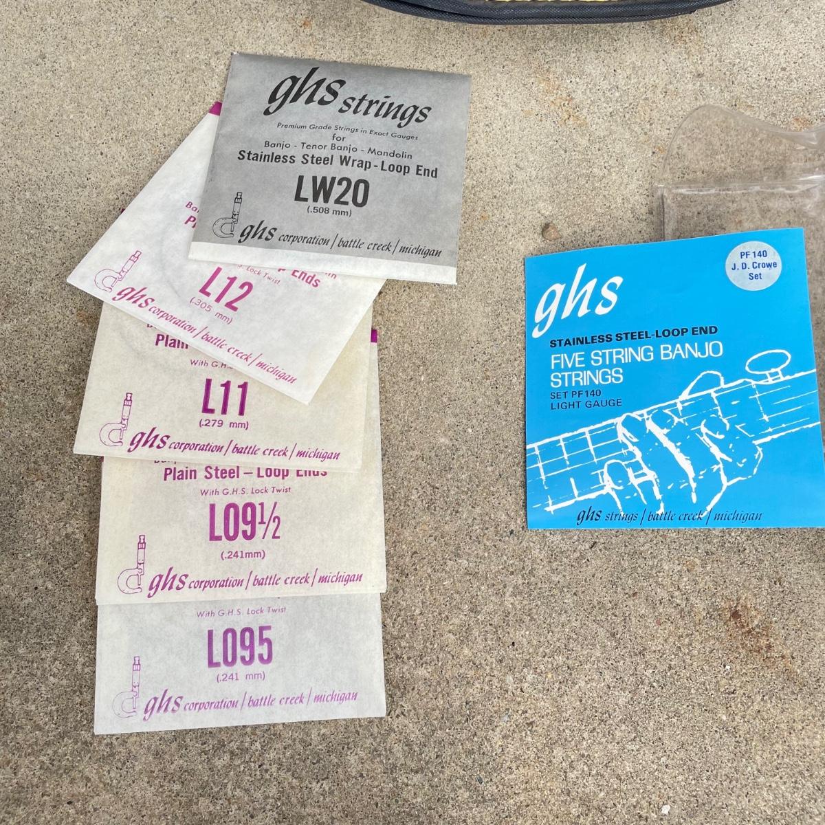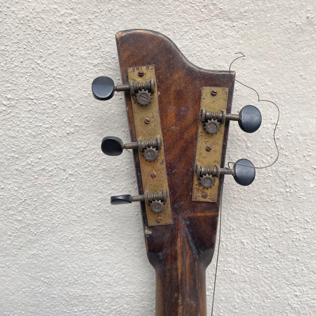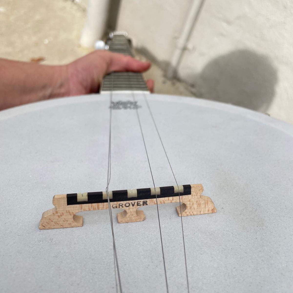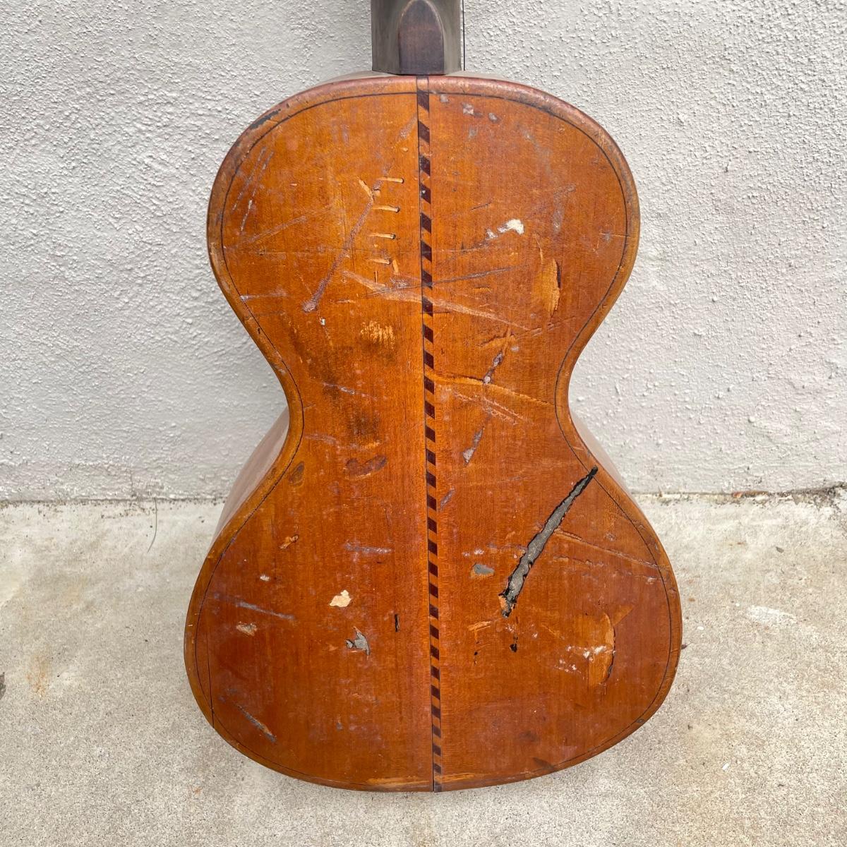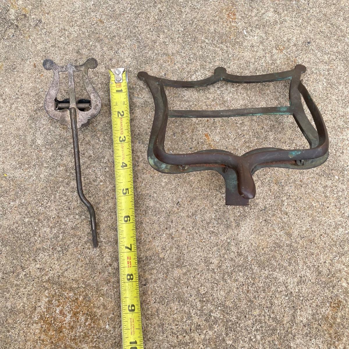 Blue Ridge five string banjo with extra strings and hard case measuring 15” x 40”. Lot also has one vintage Autoharp by Zimmerman Autoharp Company, a handmade in Horse Shoe, NC lovely guitar that appears to have inlay throughout. Two classic music stands, the larger appears to be brass, a stack of 33 1/3 plus two 78s vinyl and a rustic wood framed picture. See images. Shipping available. Please call UPS with dimensions at 828-252-6930 for a shipping quote prior to bidding.