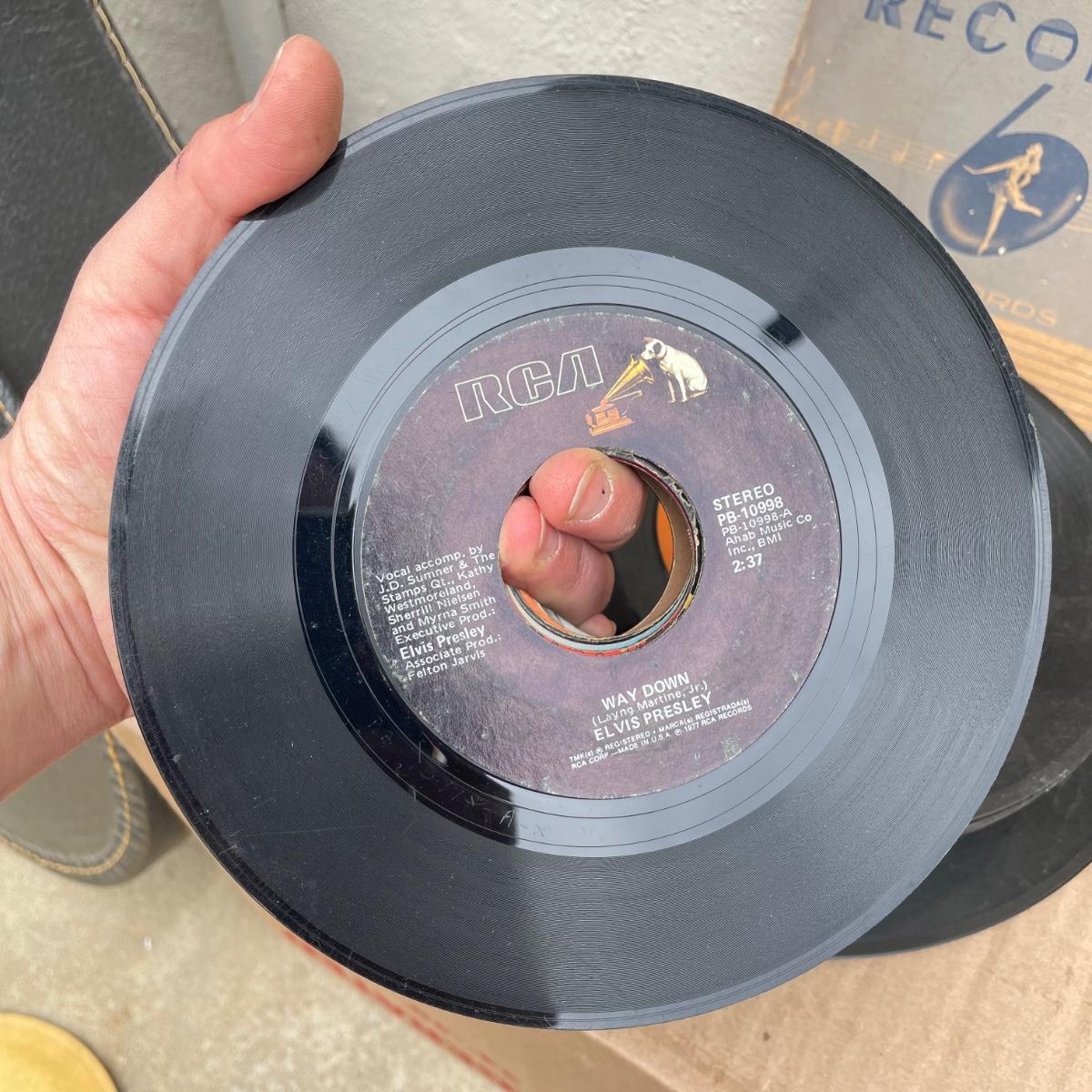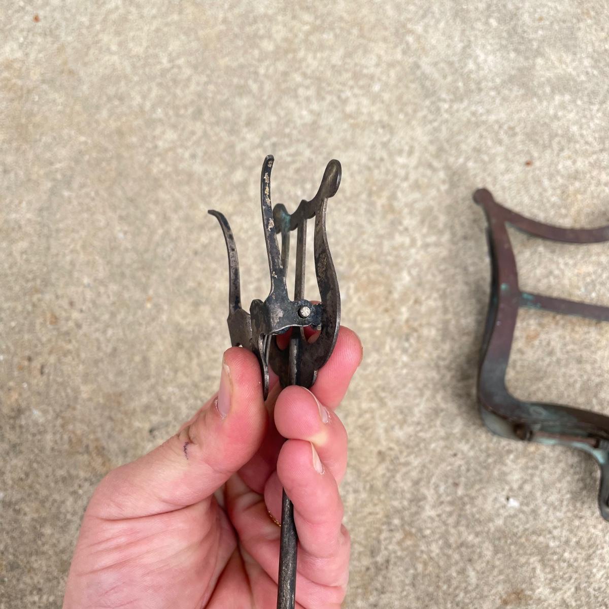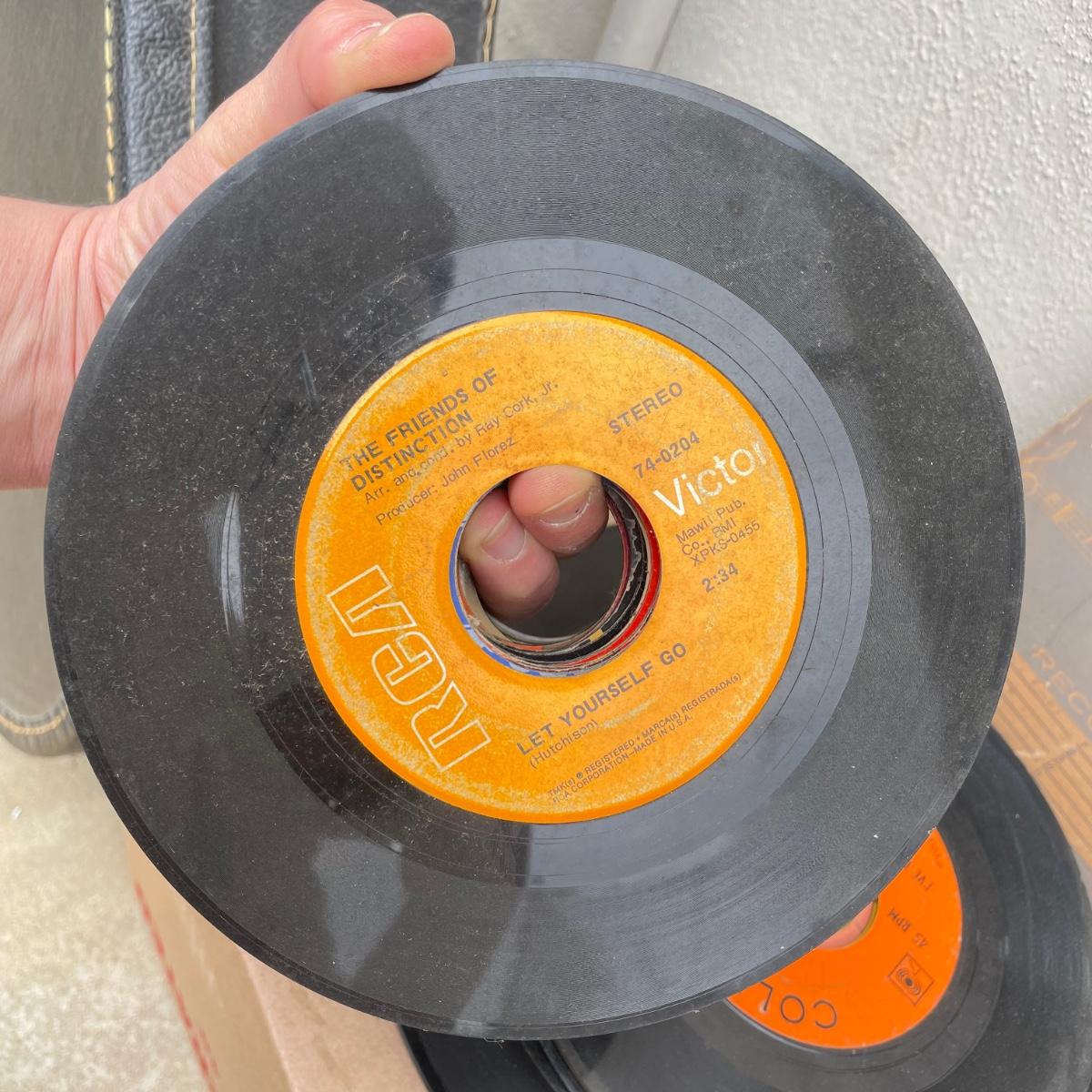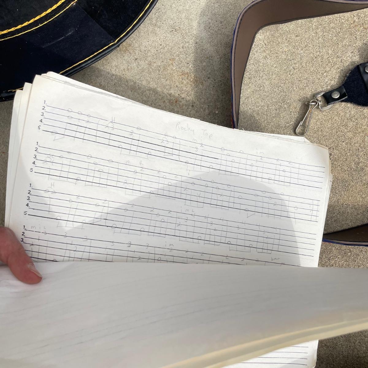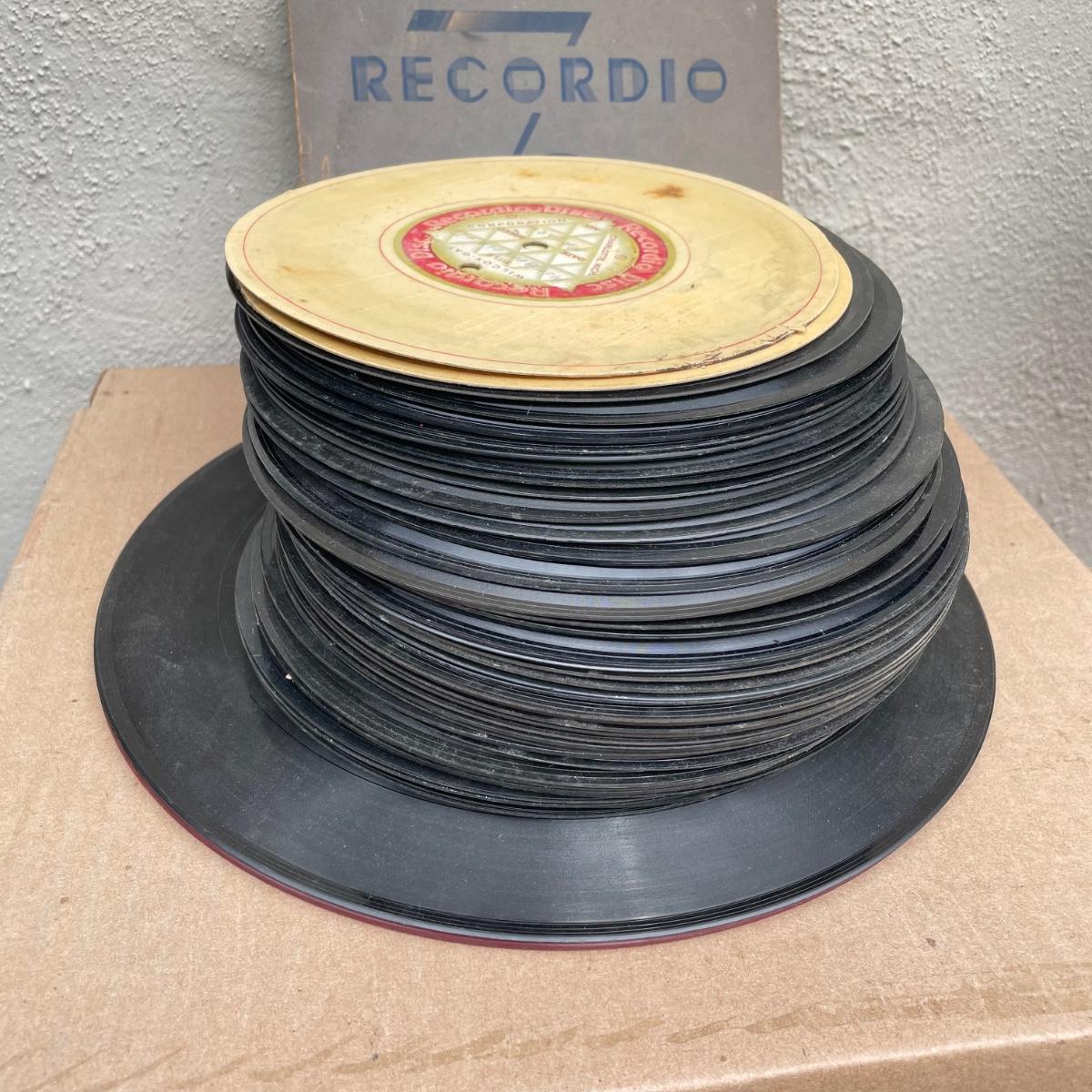 Blue Ridge five string banjo with extra strings and hard case measuring 15” x 40”. Lot also has one vintage Autoharp by Zimmerman Autoharp Company, a handmade in Horse Shoe, NC lovely guitar that appears to have inlay throughout. Two classic music stands, the larger appears to be brass, a stack of 33 1/3 plus two 78s vinyl and a rustic wood framed picture. See images. Shipping available. Please call UPS with dimensions at 828-252-6930 for a shipping quote prior to bidding.