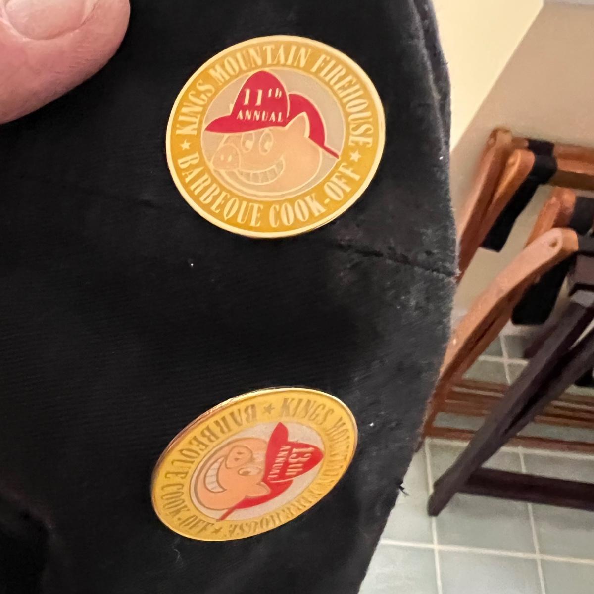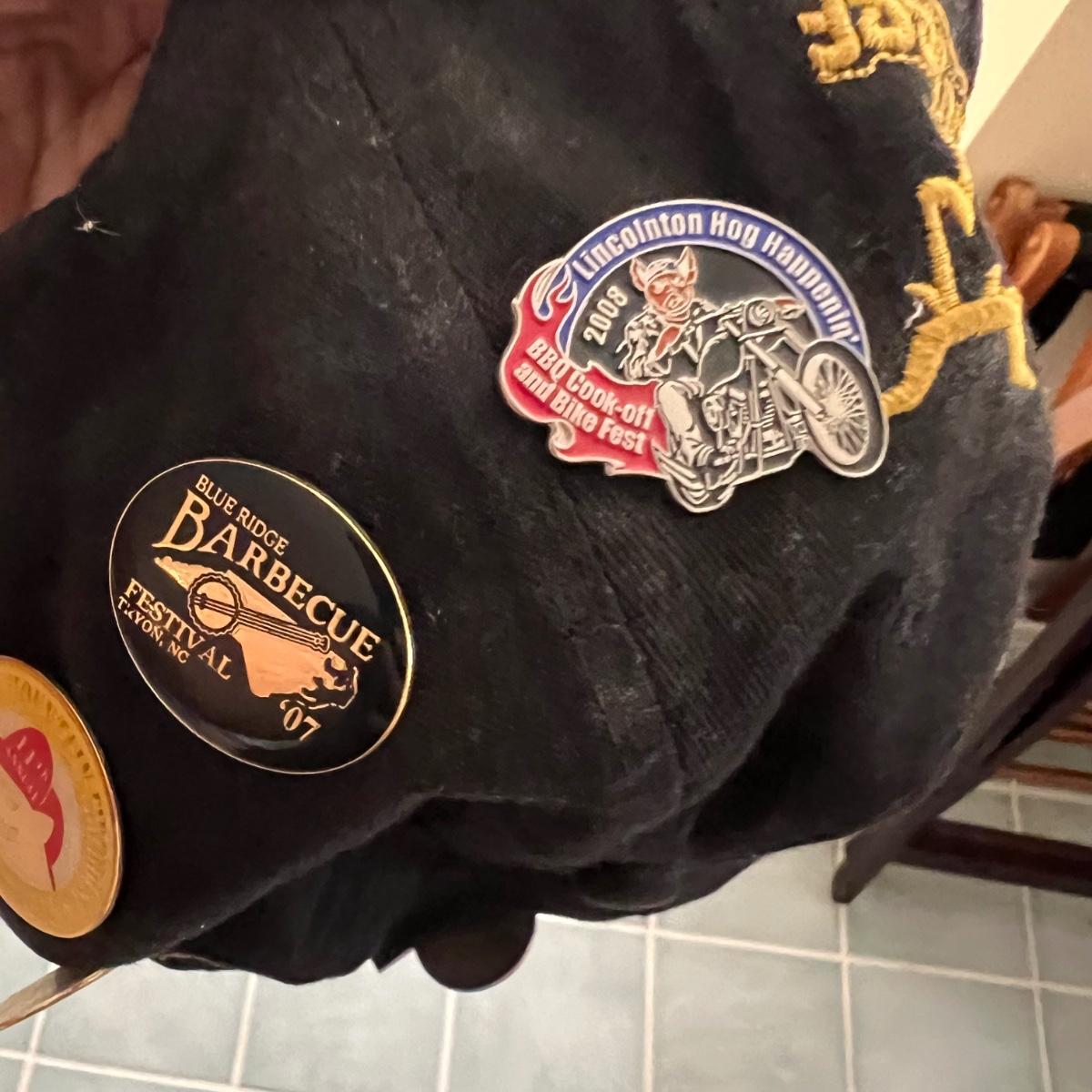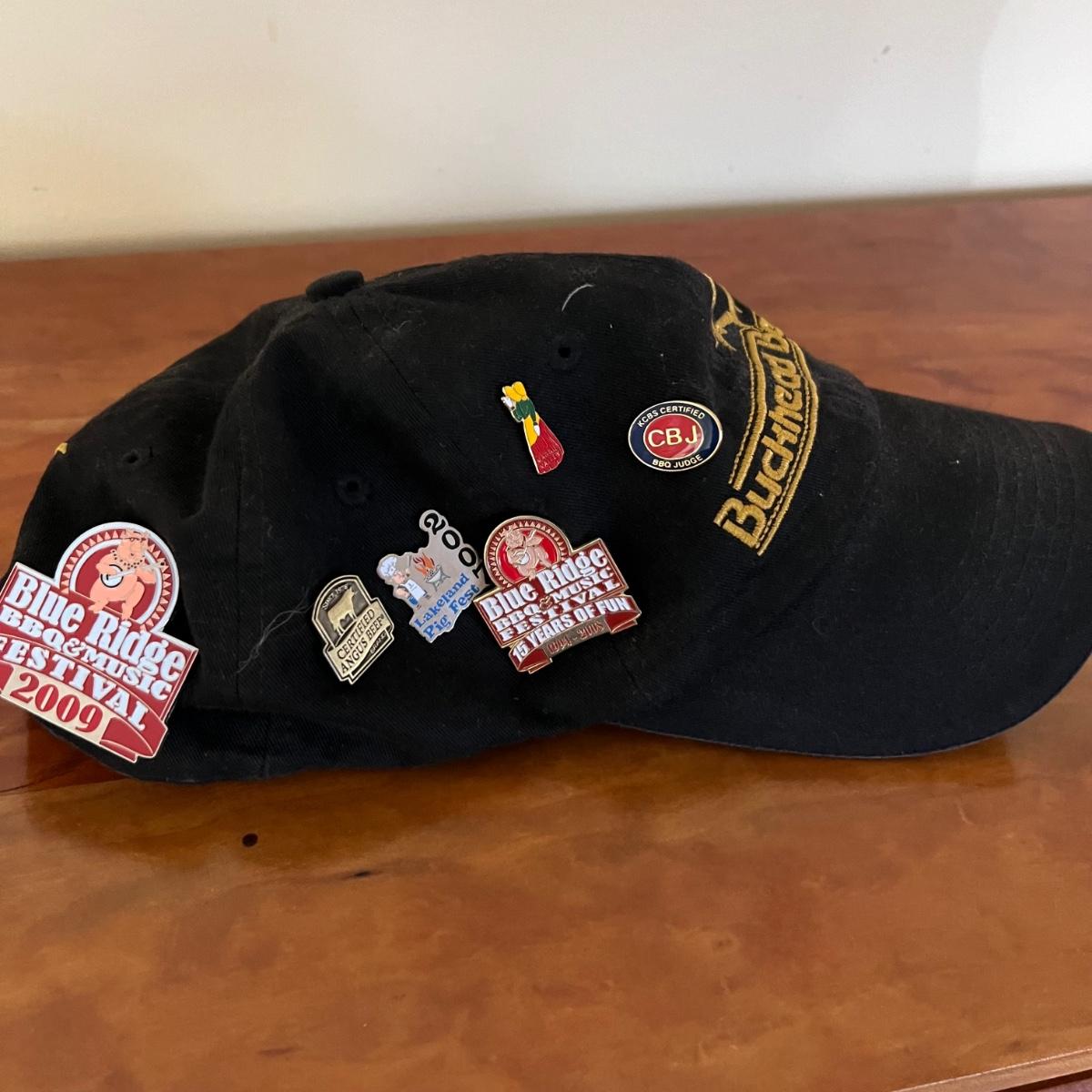 For all you lovers of BBQ! Blue Ridge Barbecue & Music Festival camp chair and a golf umbrella. Also an adjustable baseball cap with collectors BBQ related brooches attached.