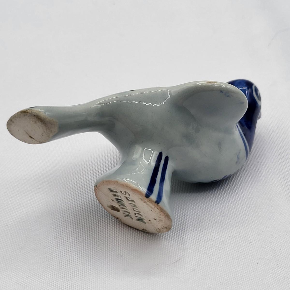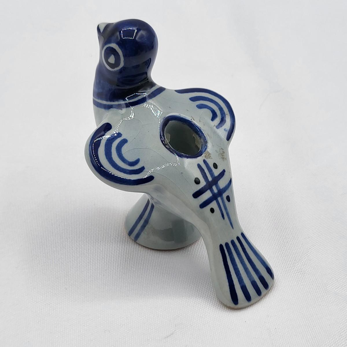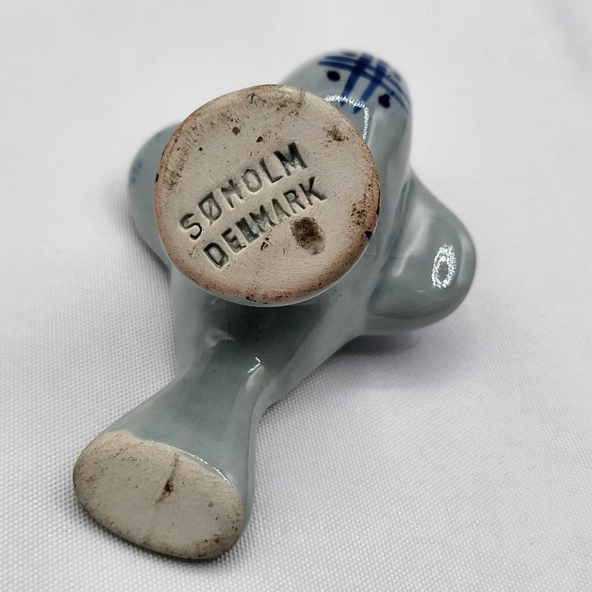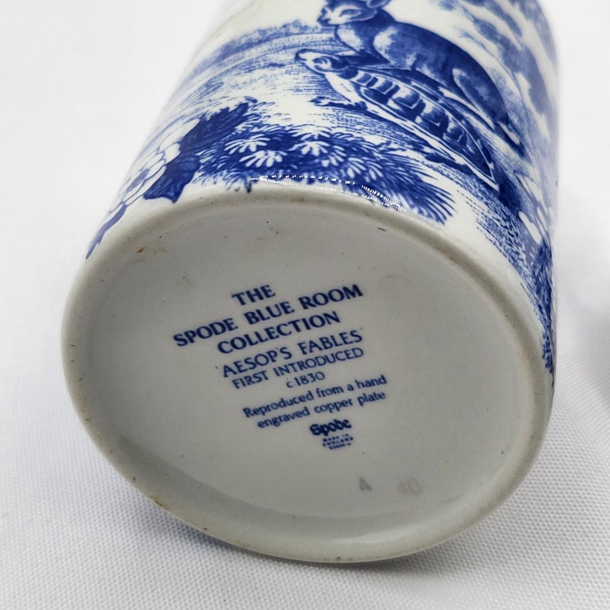 The Spode Blue Room Collection, four 4.25" lidded porcelain jars for herbs & spices (Mint, Thyme, Parsley & Oregano) and a ceramic 4" dove small candle stick holder, signed Soholm Denmark.