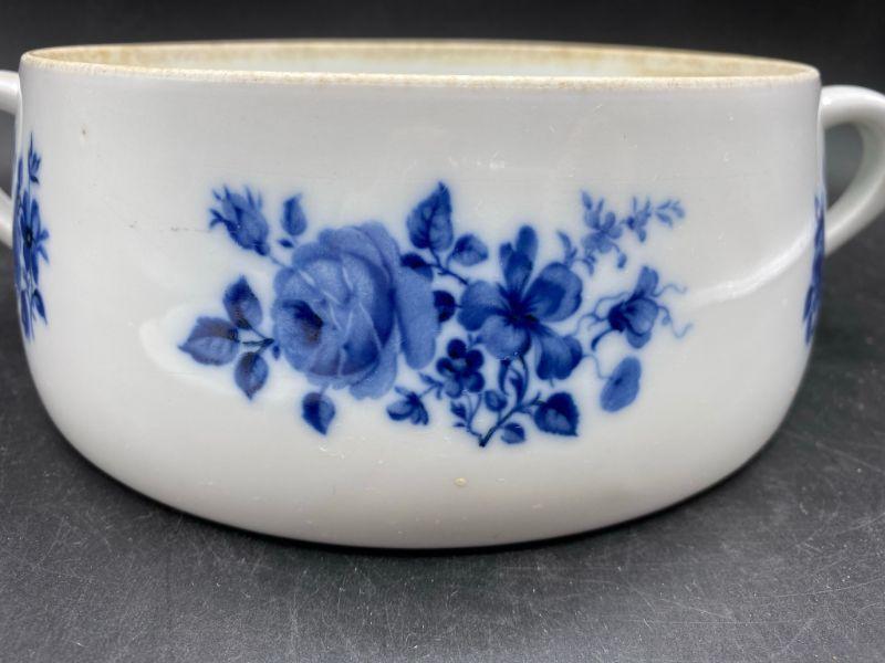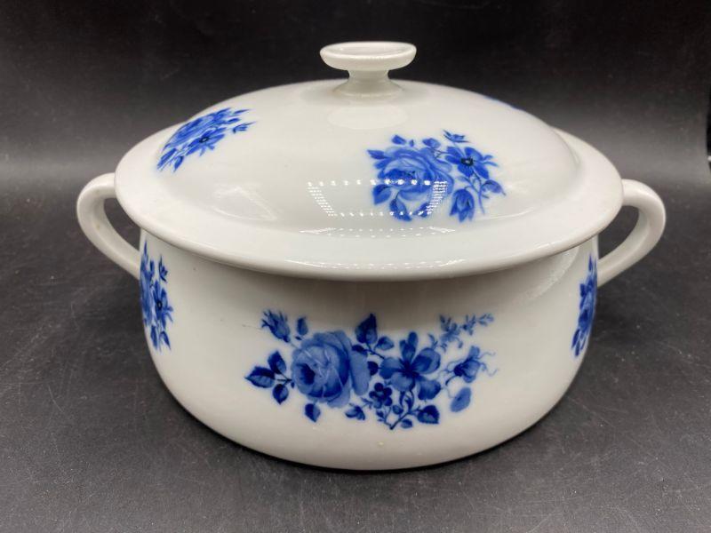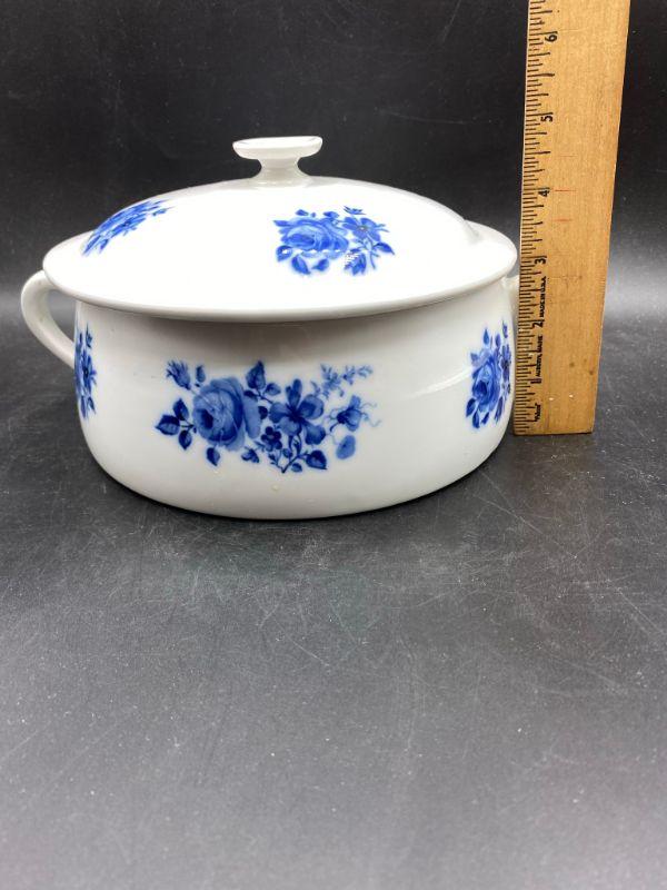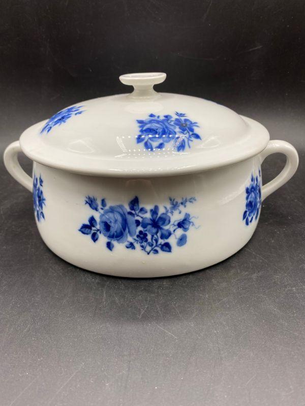 Blue Rose Lidded Casserole Dish France Le Faune Lourioux YD#016-1120-00043