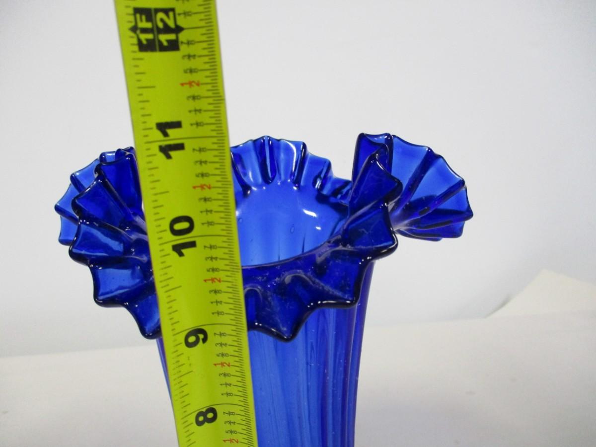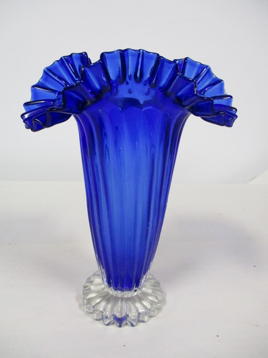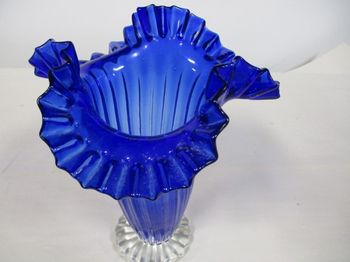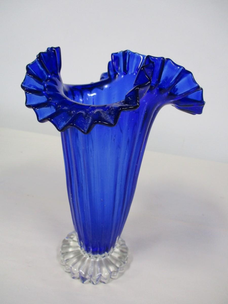 Blue Ruffled Art Glass Vase