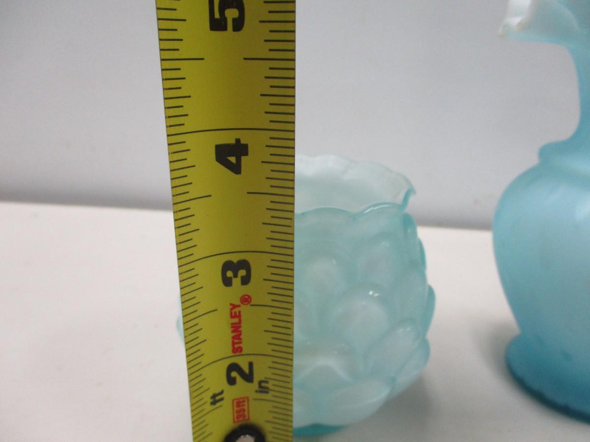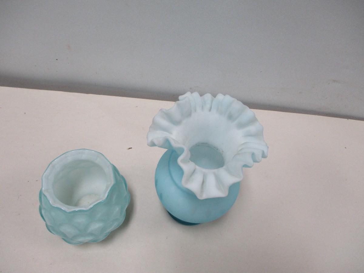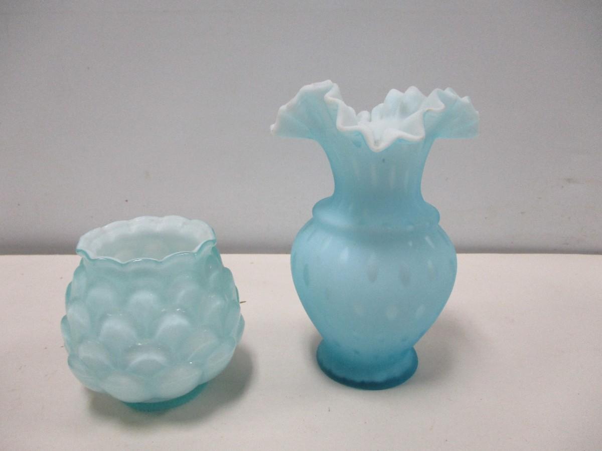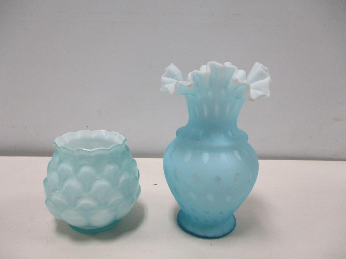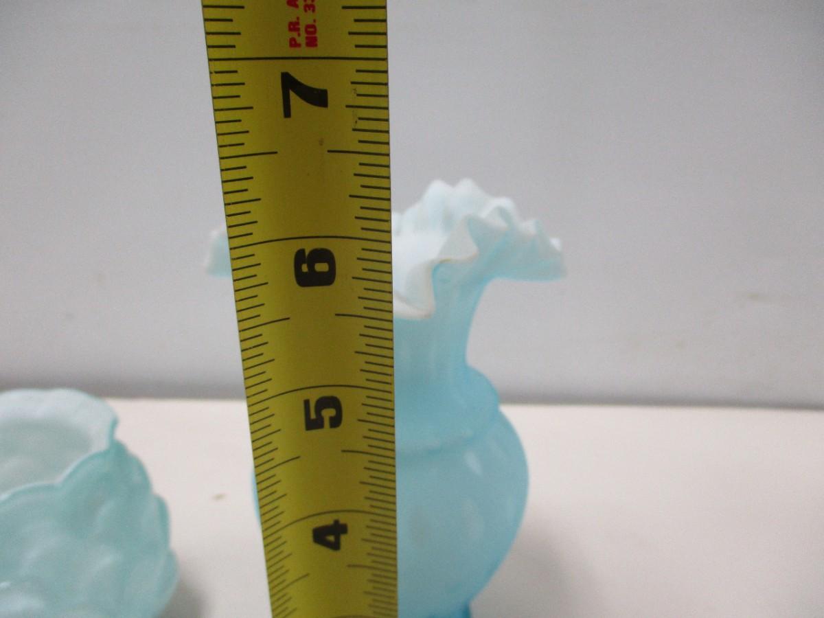 Vintage Fenton Blue Ruffled Vase & Candle Holder