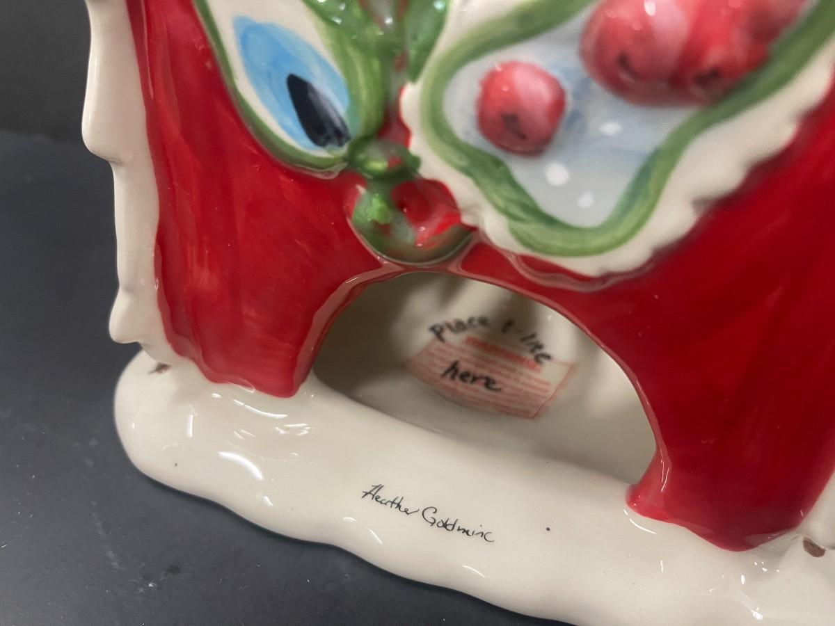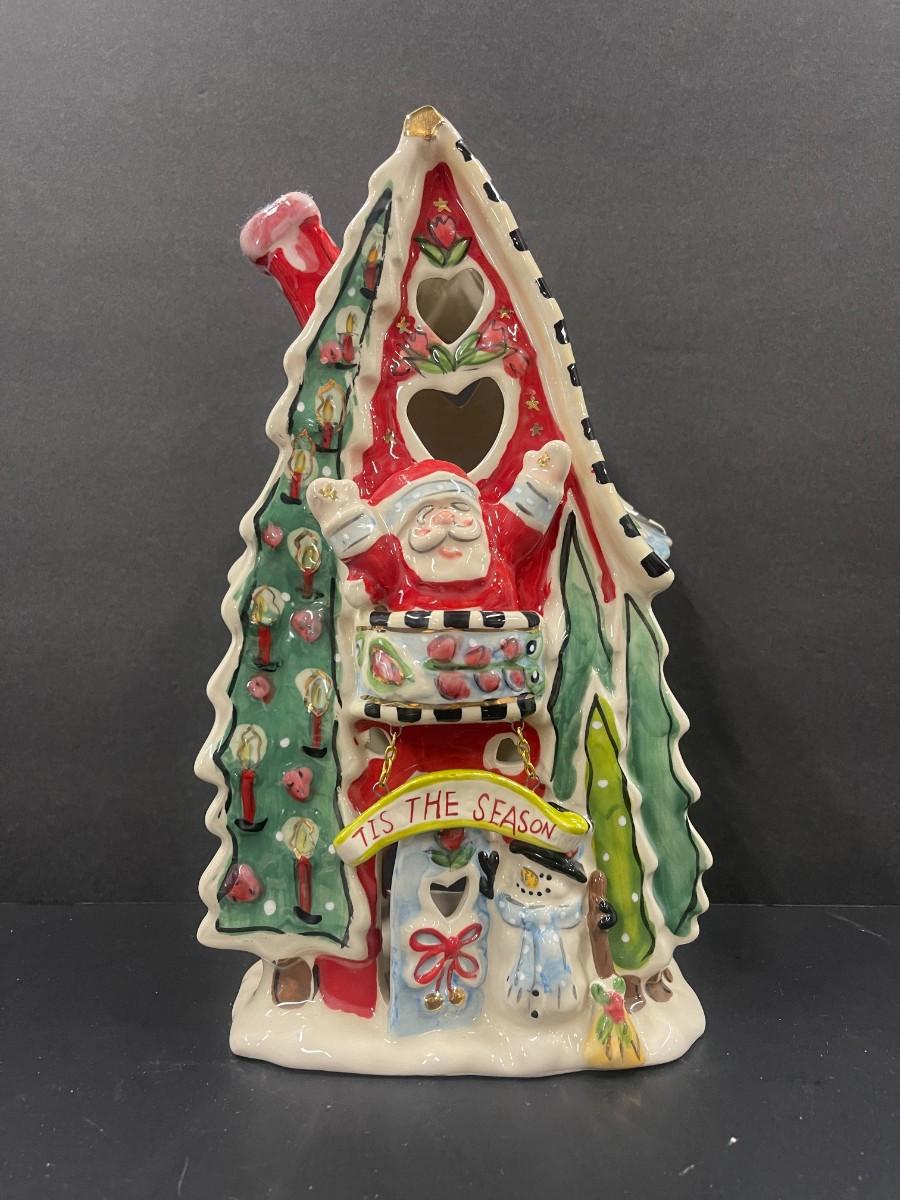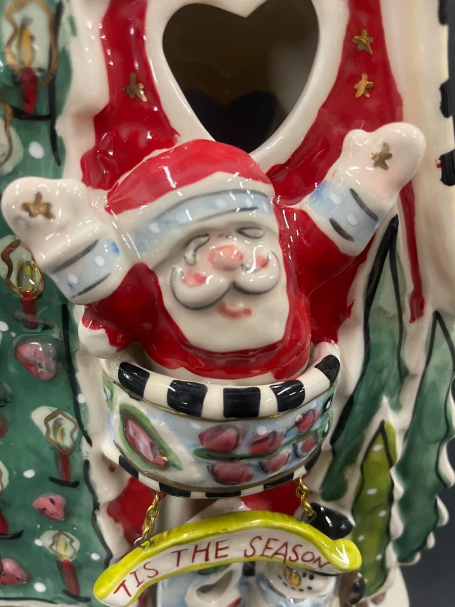 Blue Sky Christmas Tis The Season Ceramic Candle Holder. 12" x 6 1/2" x 5"