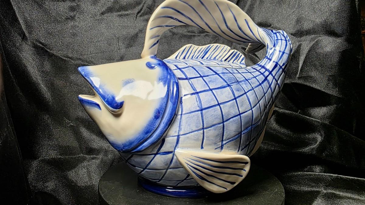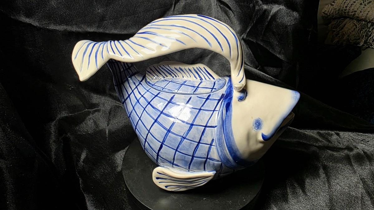 Blue Sky Clayworks Diane Fish Teapot – Hand-Painted Blue & White Ceramic Collectible