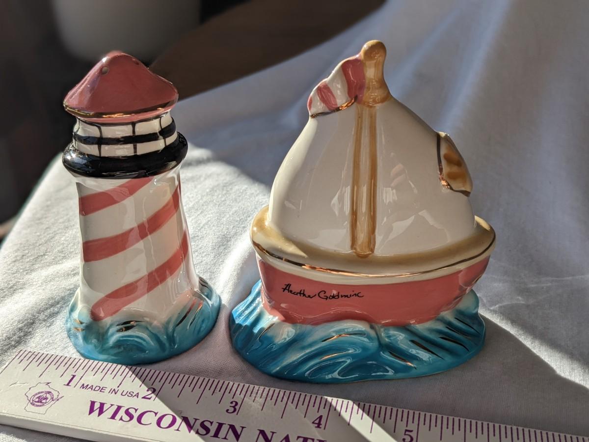 Blue Sky Twilight Cove Salt And Pepper Shakers Signed By Heather Goldminc