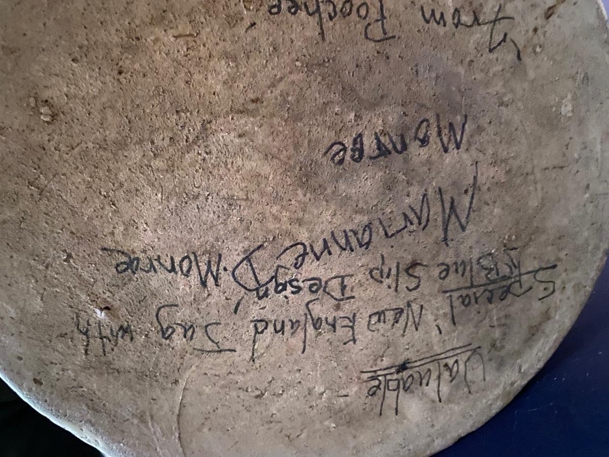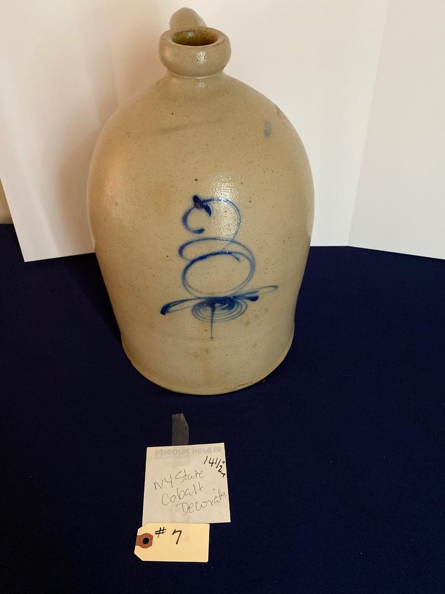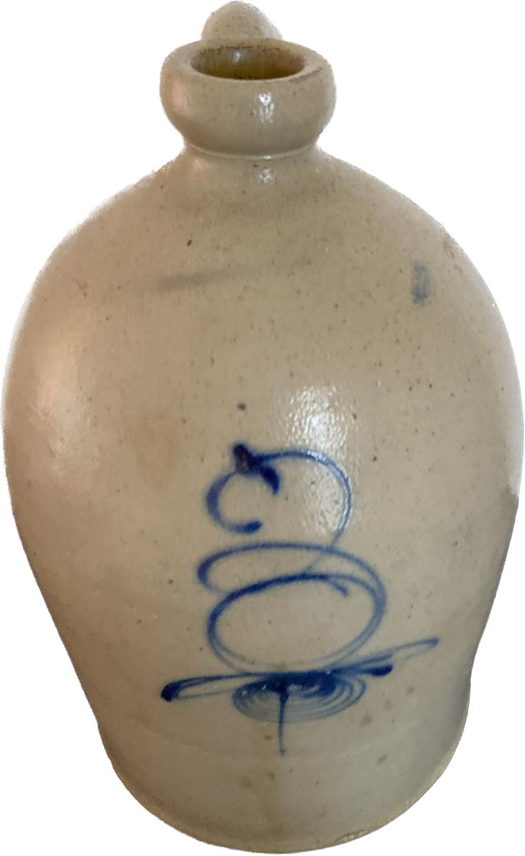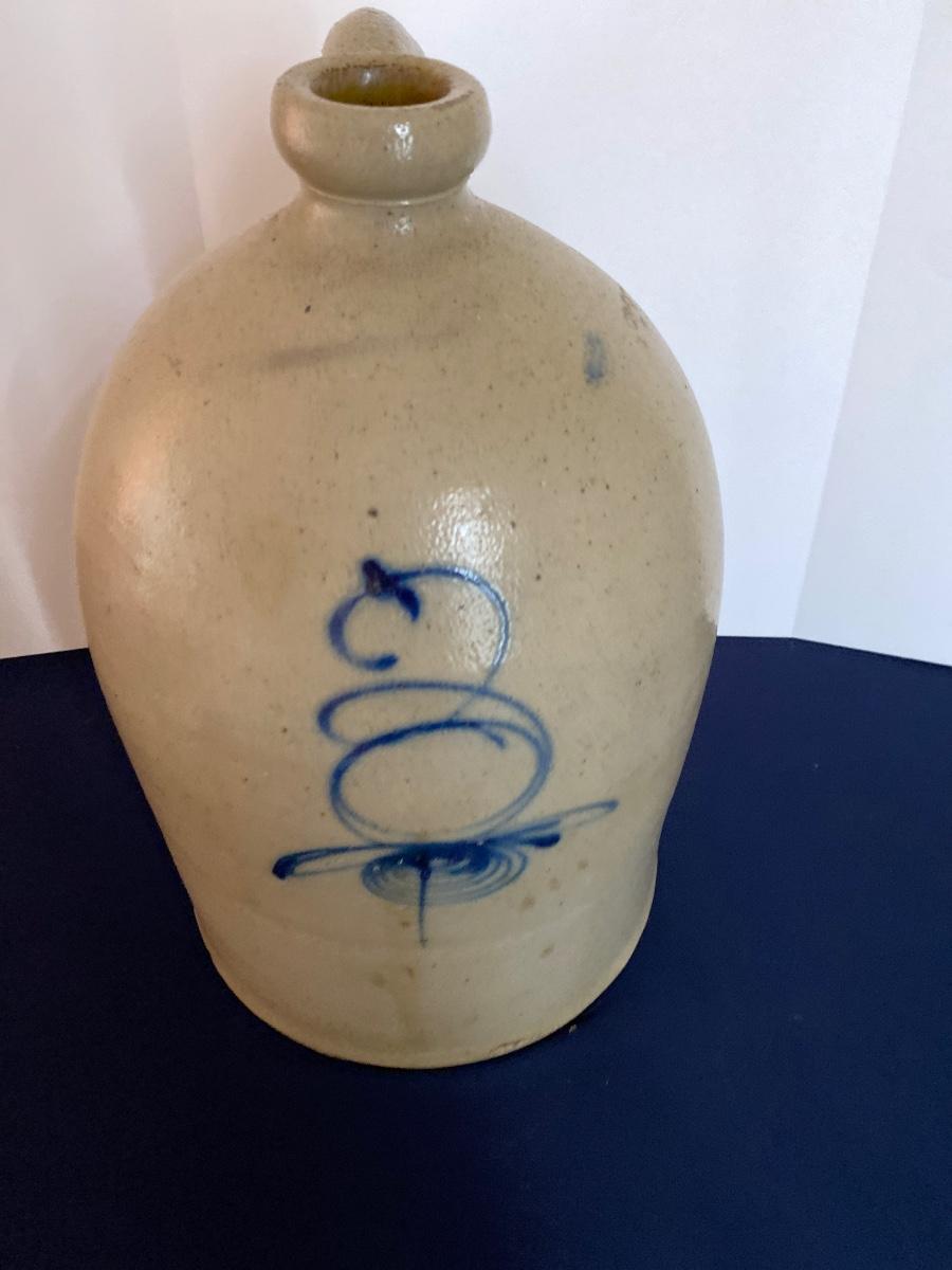 New England Possibly NY State Blue Slip Design Decorated Pottery Jug 14.5in Tall As Pictured, From Poochee