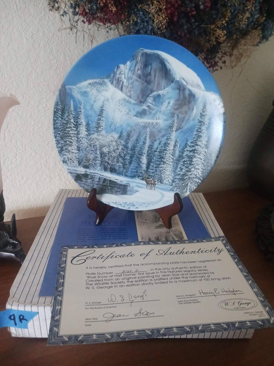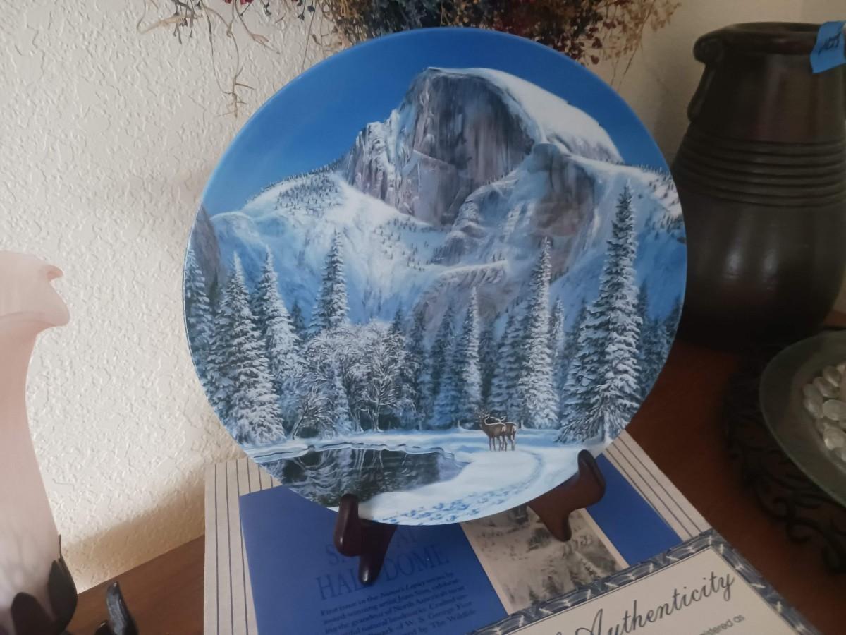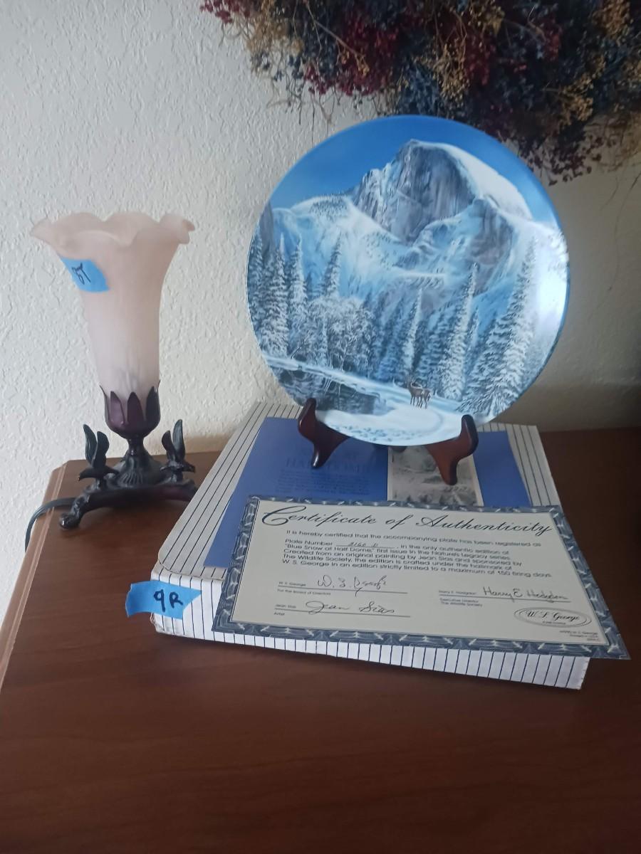 "BLUE SNOW AT HALF DOME" PLATE AND TULIP LAMP