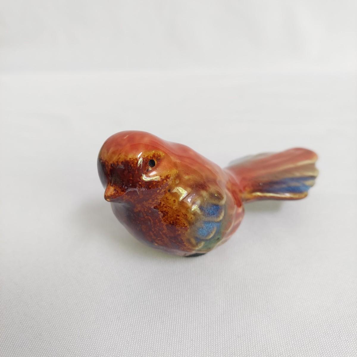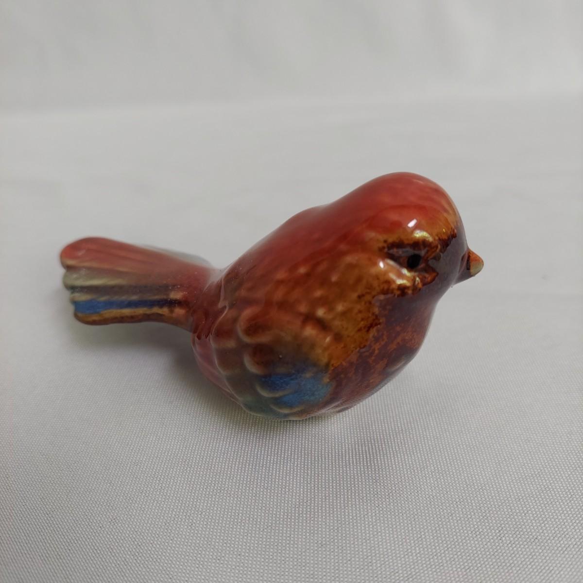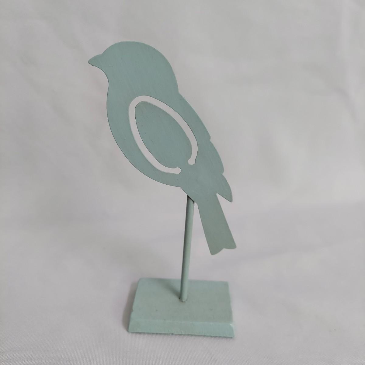 Many pieces of bird decor including a framed print of 'Blue Sparrow Willow I' by Ellen Grantner. White manufactured wood frame is 25.5" x 25.5"H. Also included are an 8" Carolina Wren plate, a ceramic tea light candle holder with a crackle glaze that's 19" x 3" x 5"H, a ceramic bird figurine and a painted metal bird on a stand. Local Pickup Only.