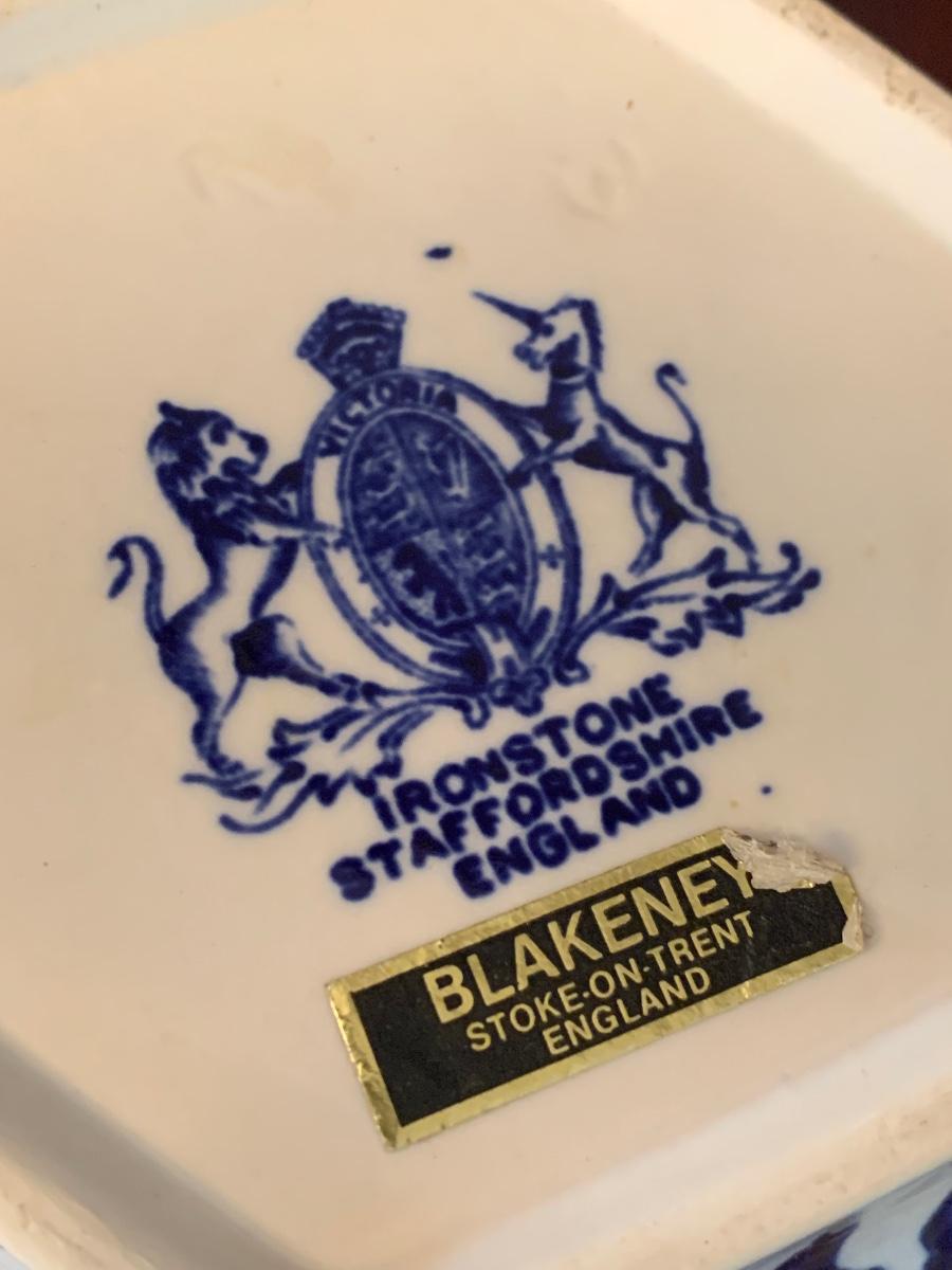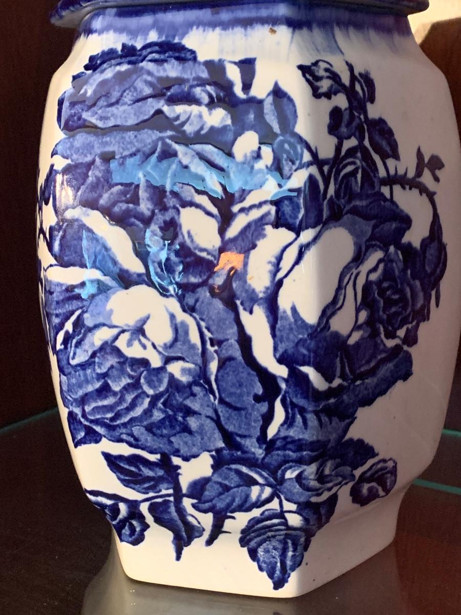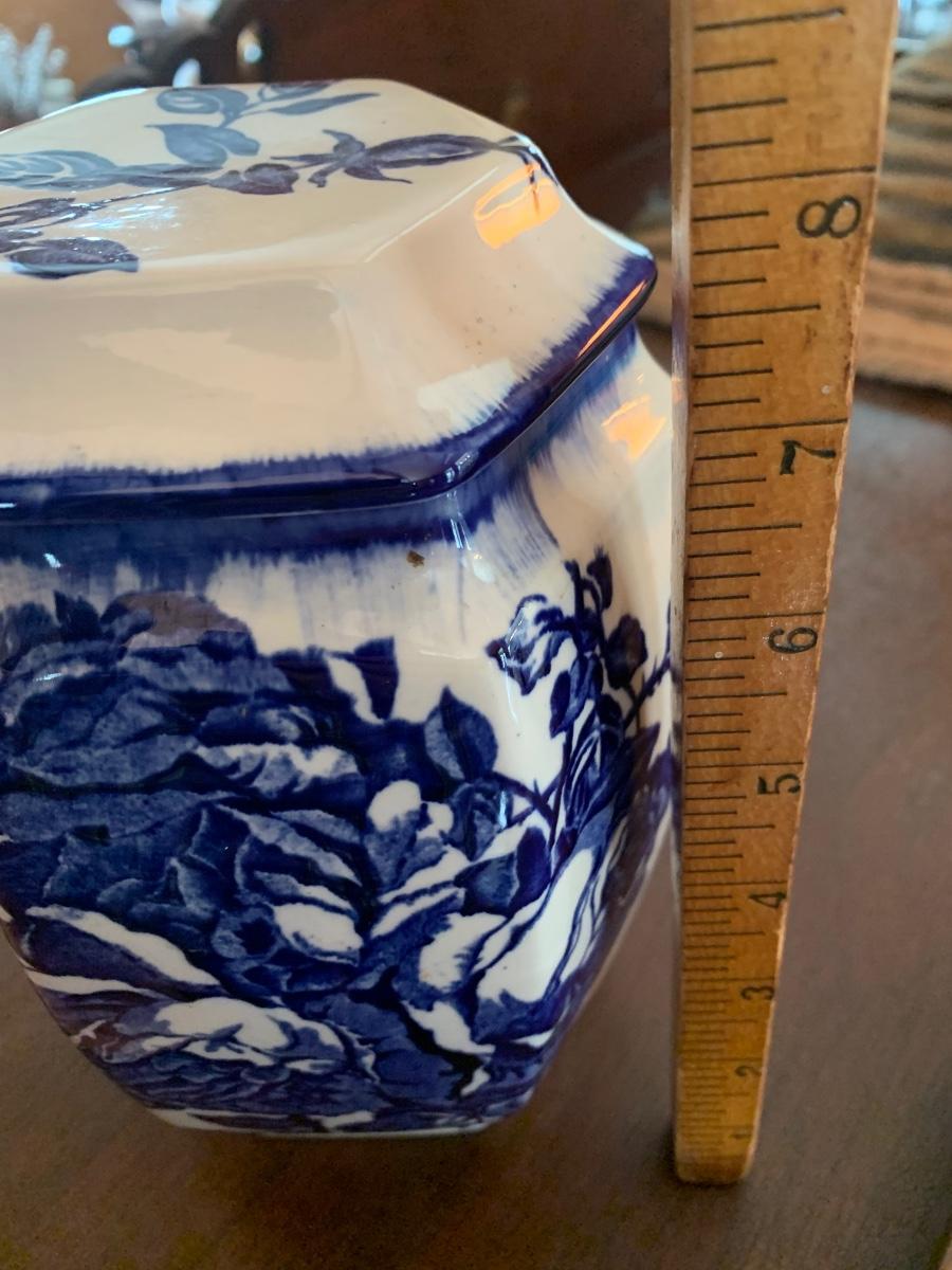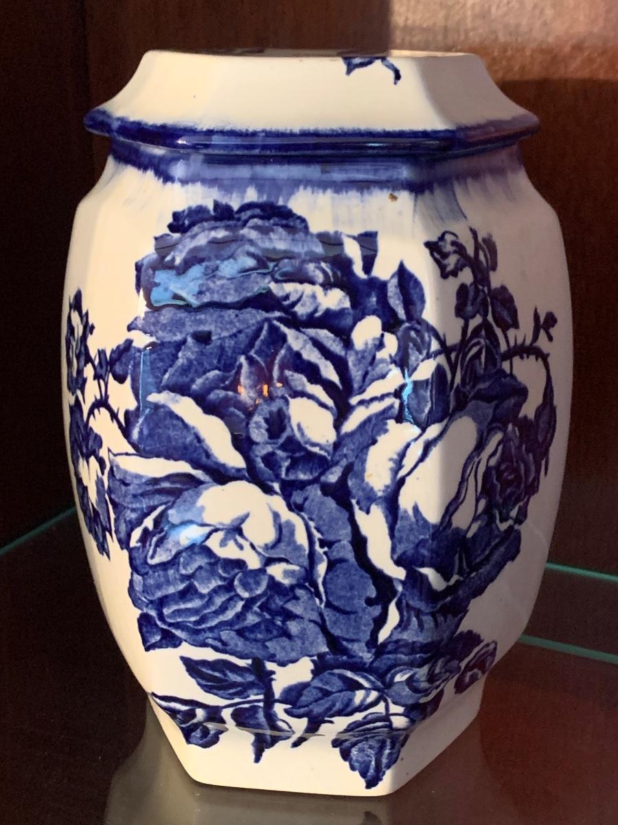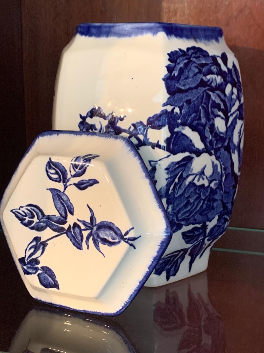 Blue Staffordshire England Ironstone Covered Tea Caddy