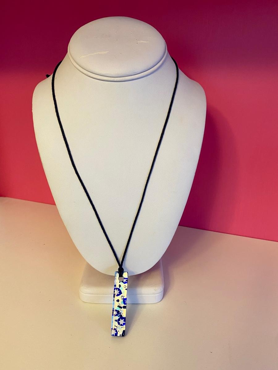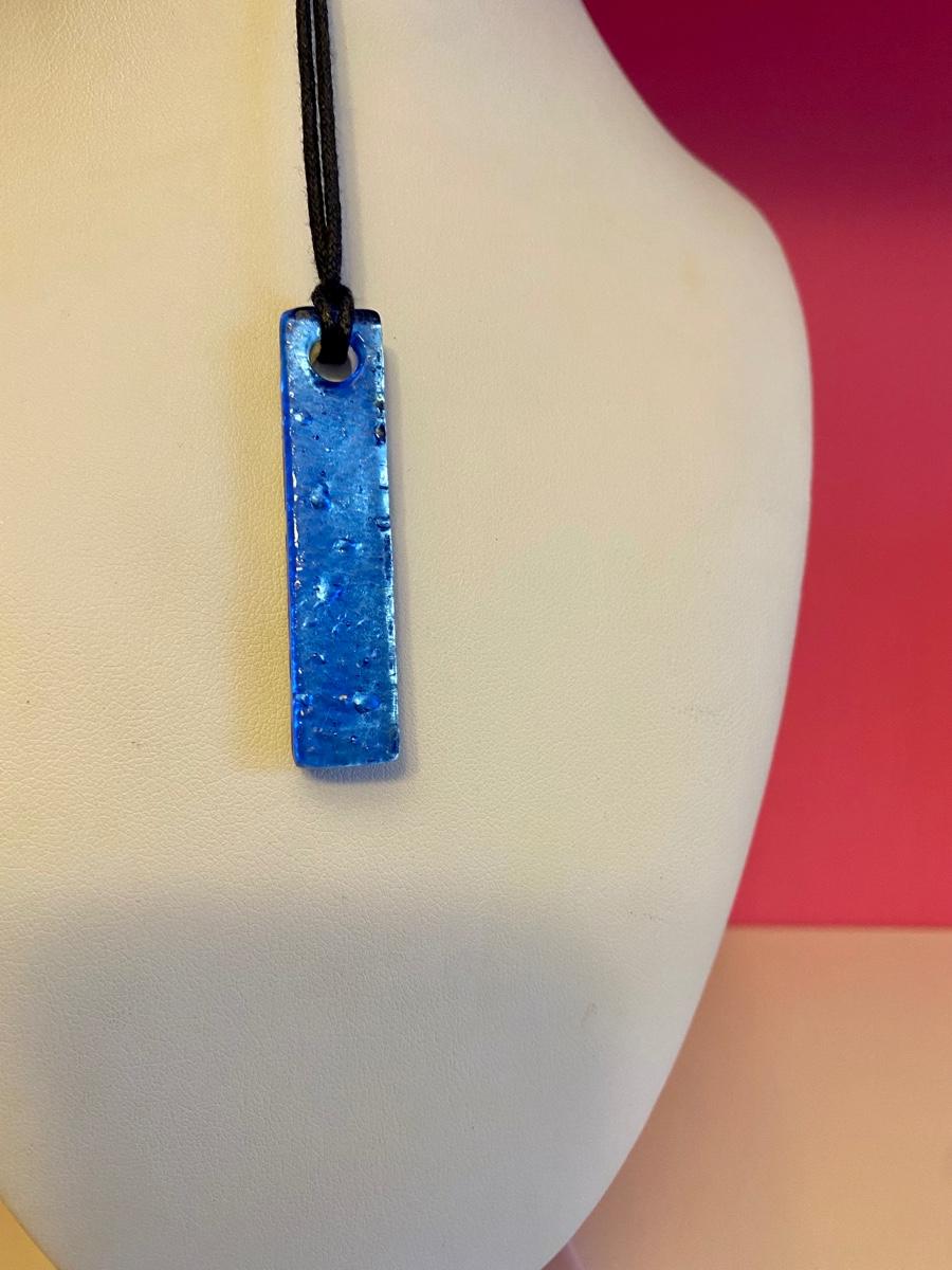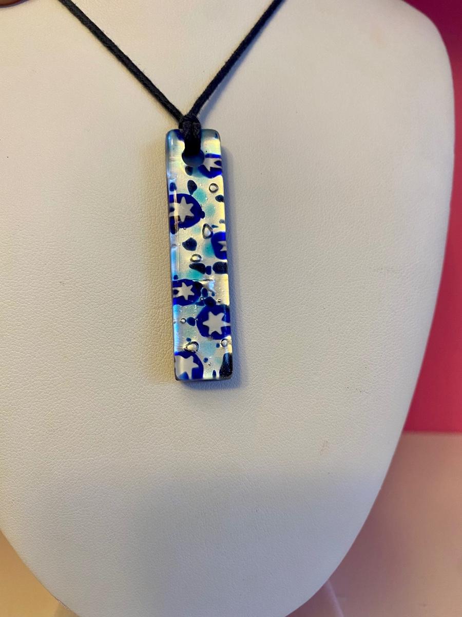 Blue Star Glass Pendant Necklace on Leather Strap