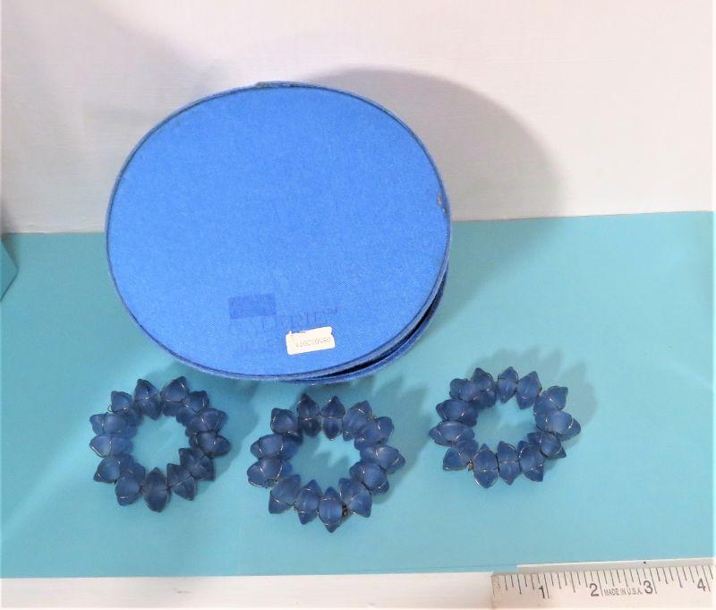 BLUE Stone Silver Jewelry Napkin Holder in GALERIE Oval Box LOT (3) Vintage