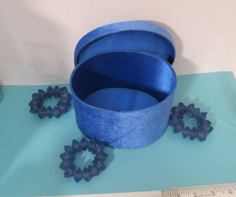 Vintage Lot of (3) Unique BLUE Stone Wire Jewelry Round Holders in a GALERIE Blue Felt Oval Box. In Good Condition for its age.