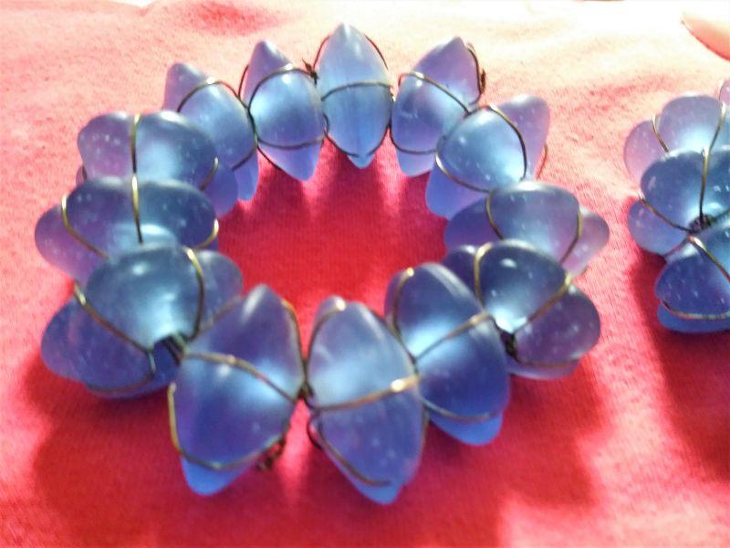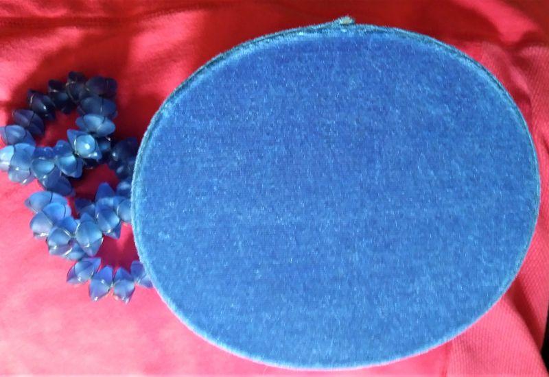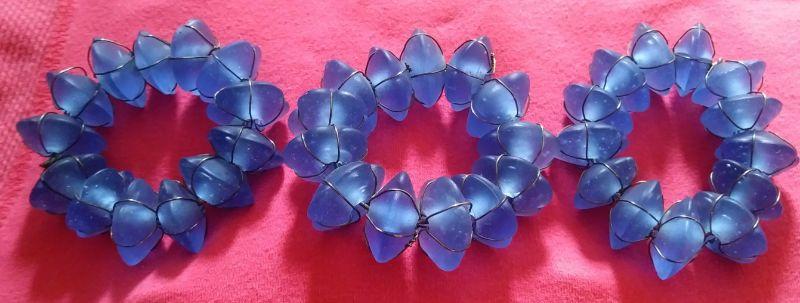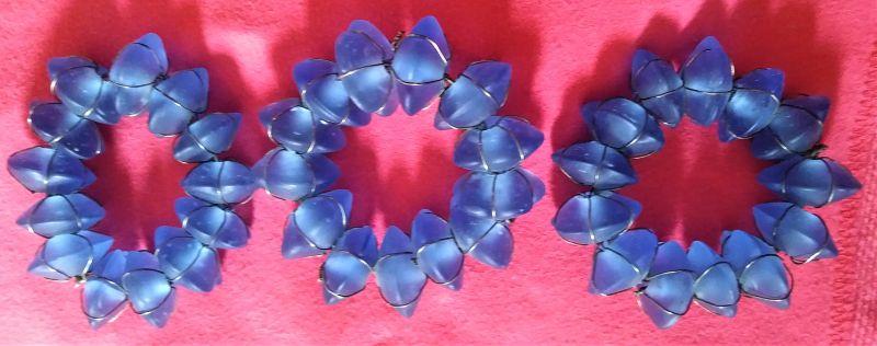 Lot of (3) Unique BLUE Stone Wire Jewelry Round Holders in a GALERIE Blue Felt Oval Box