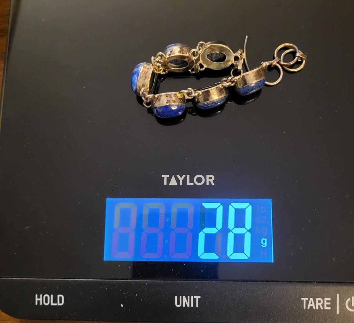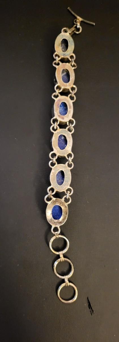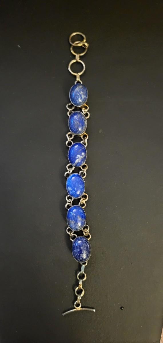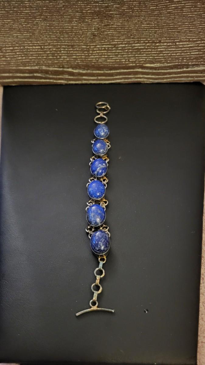 BLUE STONES SET IN STERLING SILVER BRACELET 28g