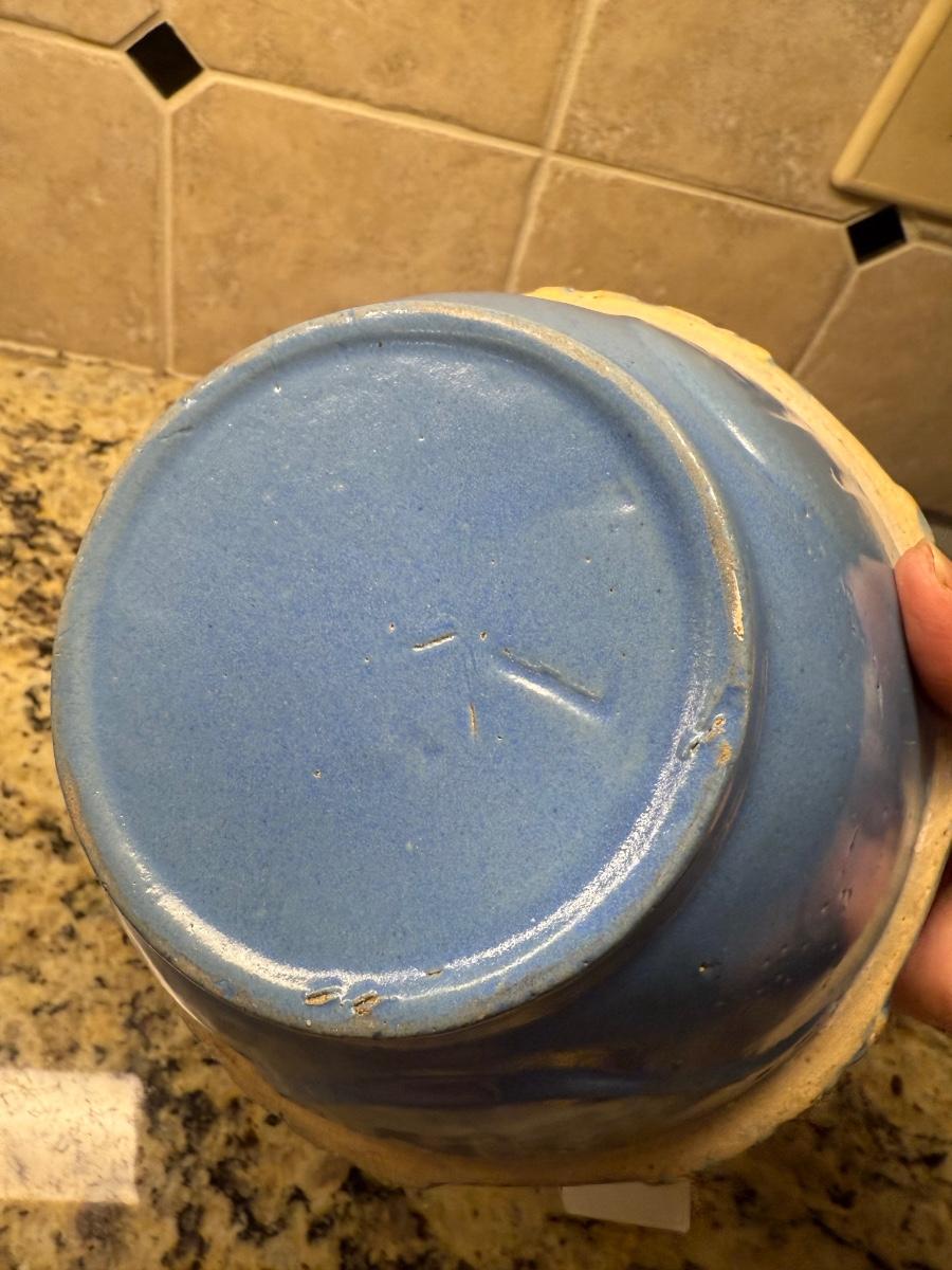 Blue stoneware mixing bowl