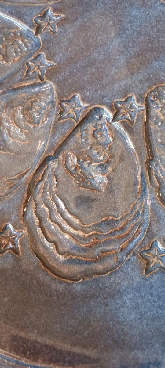 Blue stoneware oyster plate by Elizabeth from Annapolis Pottery 14 1/4" dia