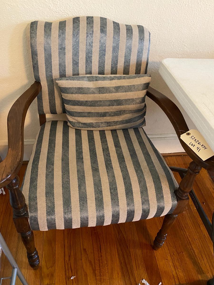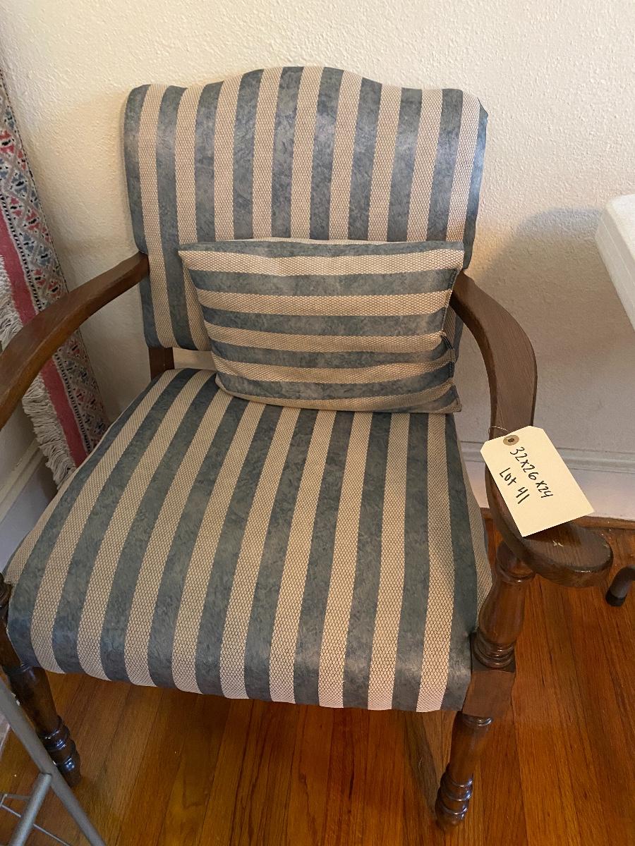 Blue Striped Upholstered Arm Chiar , CHAIR ONLY, Right Arm Loose