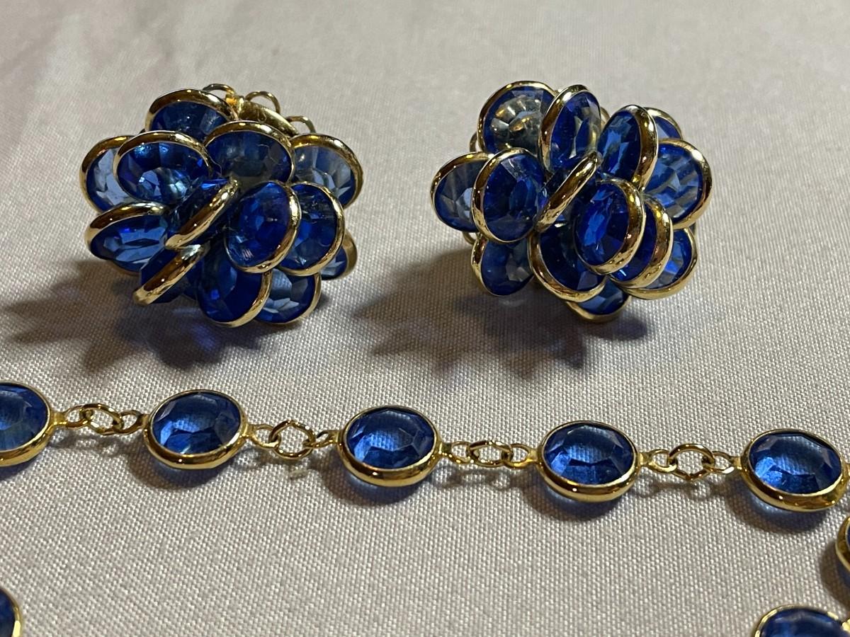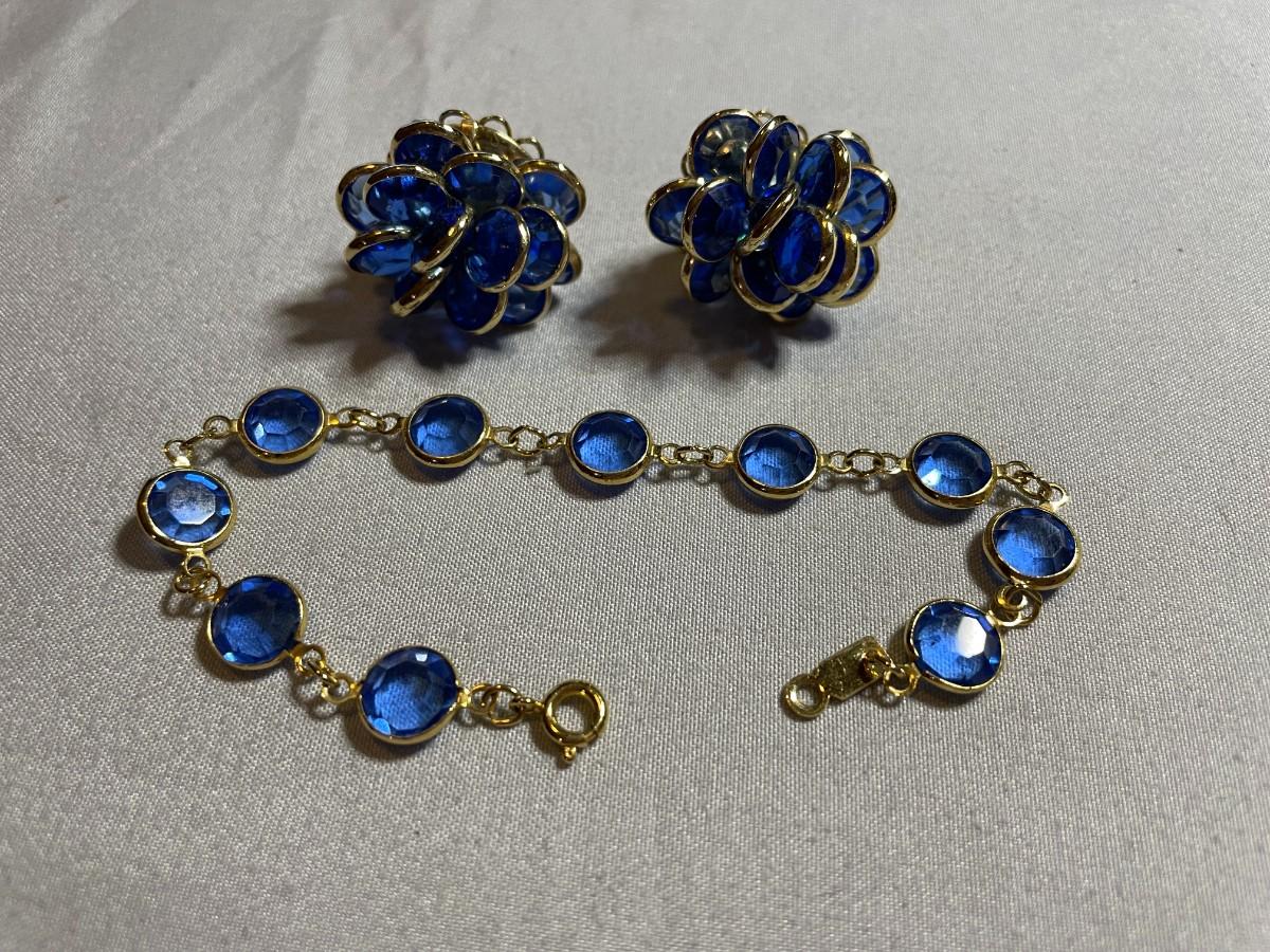 Blue Swarovski Beveled Earrings and Bracelet