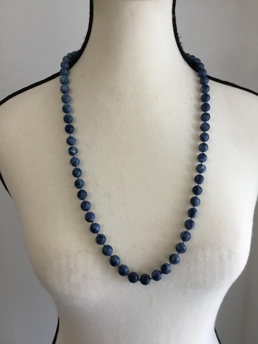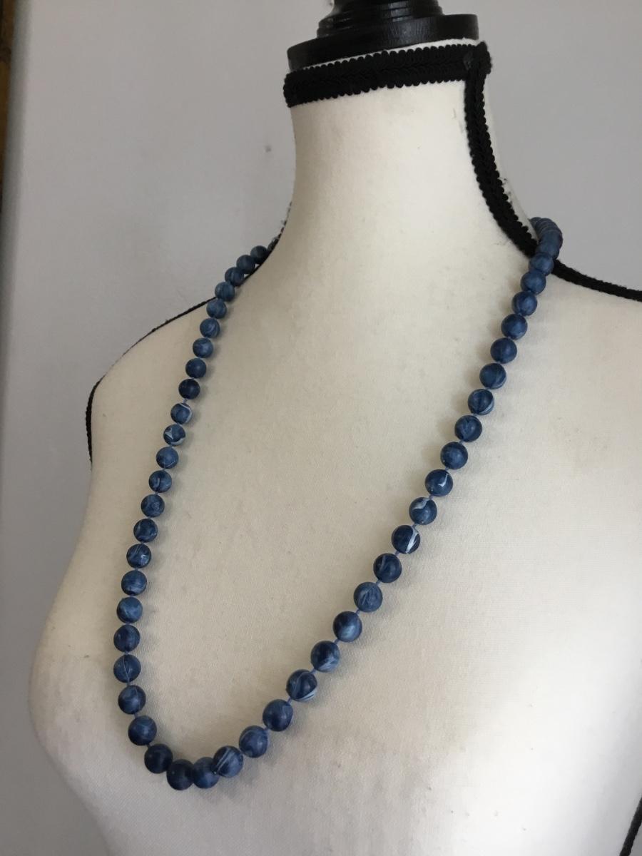 Blue swirl beaded fashion necklace