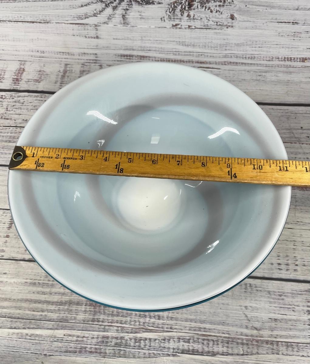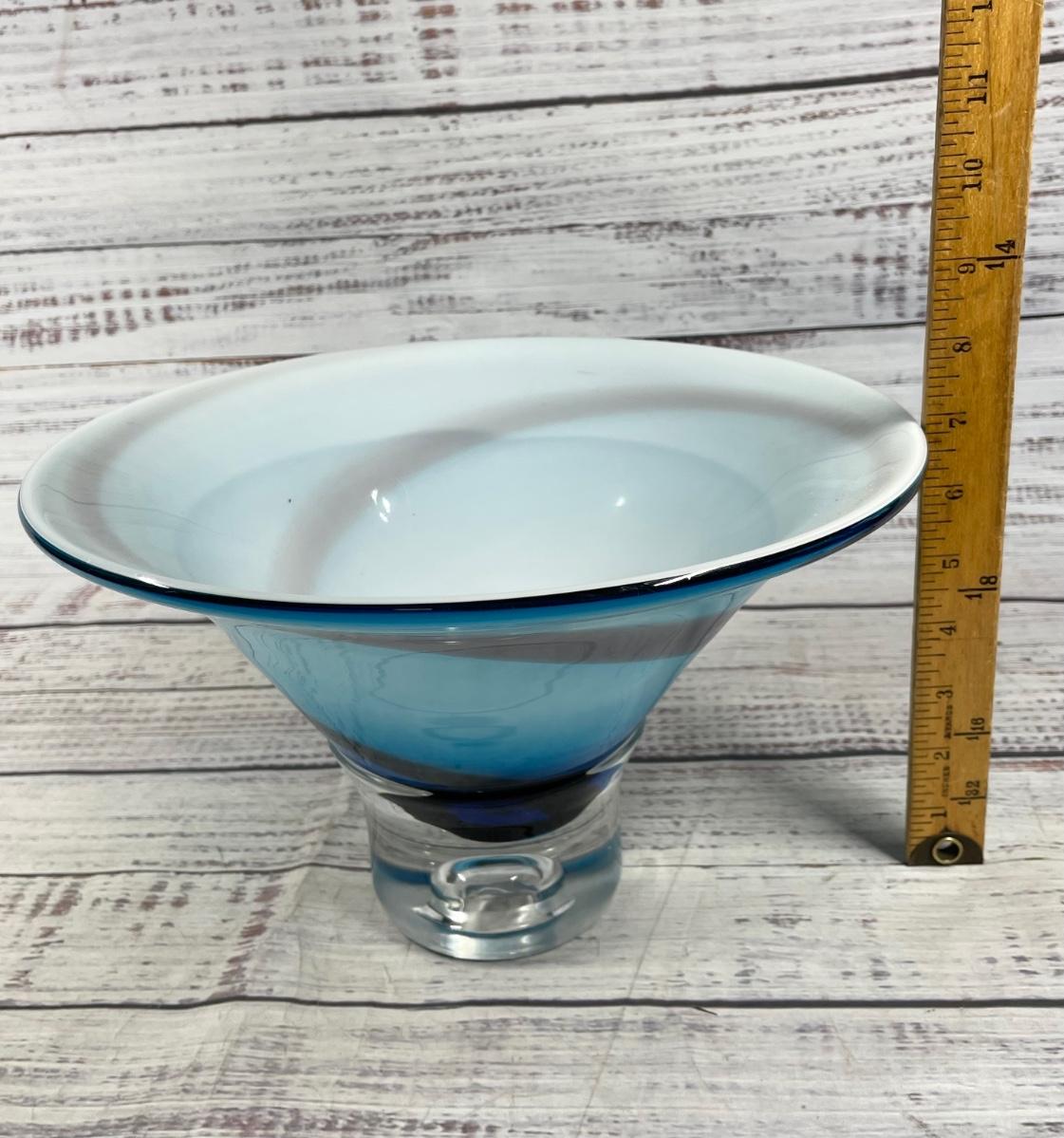 This bowl is in amazing condition and it’s very pretty. It is approximately 7” tall and 11” wide. The bowl has different shades of blue that the camera doesn’t do justice.